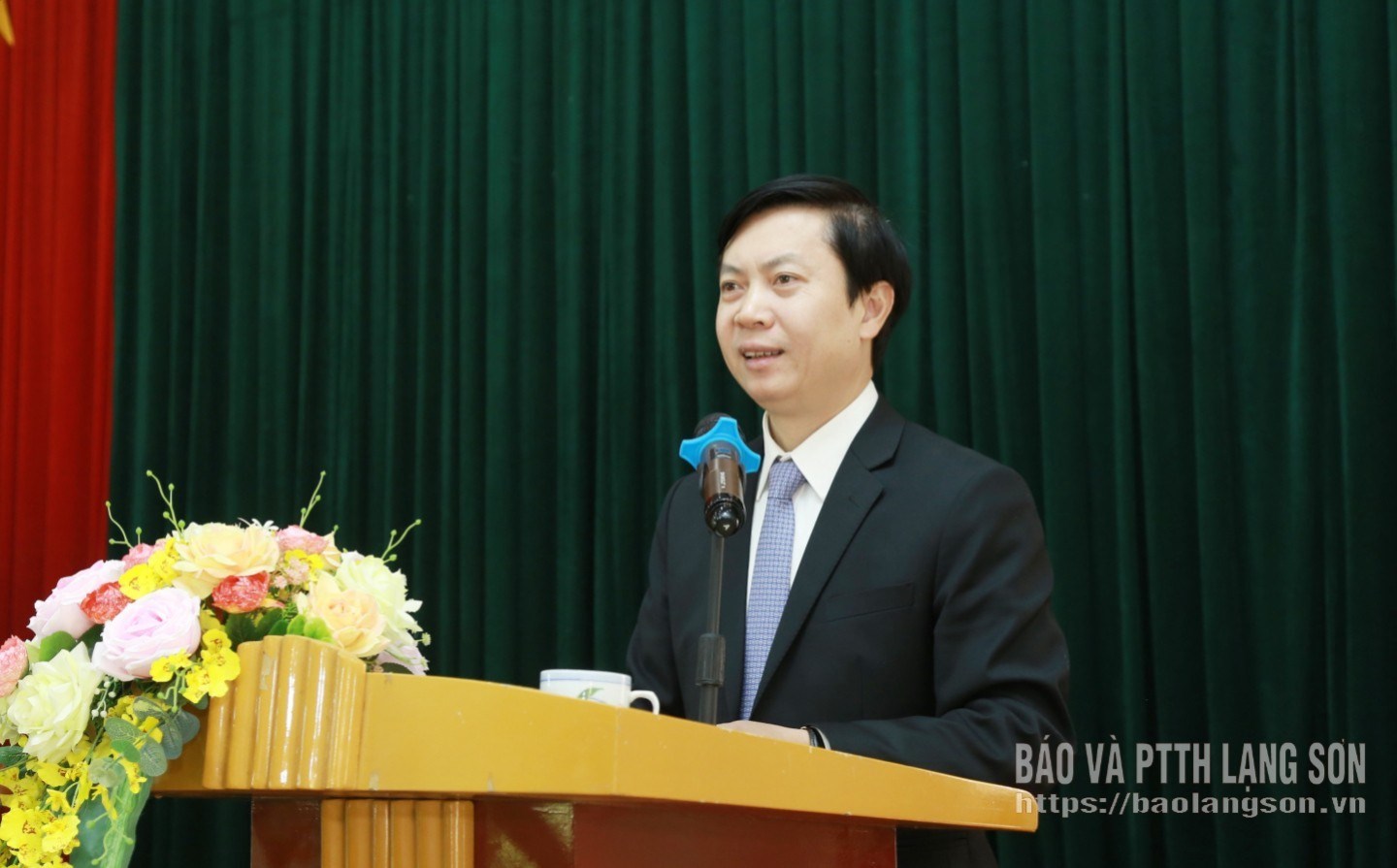 | Ông Nguyễn Hoàng Tùng, Ủy viên Ban Thường vụ Tỉnh ủy, Phó Chủ tịch Thường trực Ủy ban MTTQ Việt Nam tỉnh thông báo nhanh kết quả Đại hội, quán triệt Nghị quyết Đại hội đại biểu MTTQ Việt Nam tỉnh Lạng Sơn lần thứ XVI, nhiệm kỳ 2025 - 2030 |