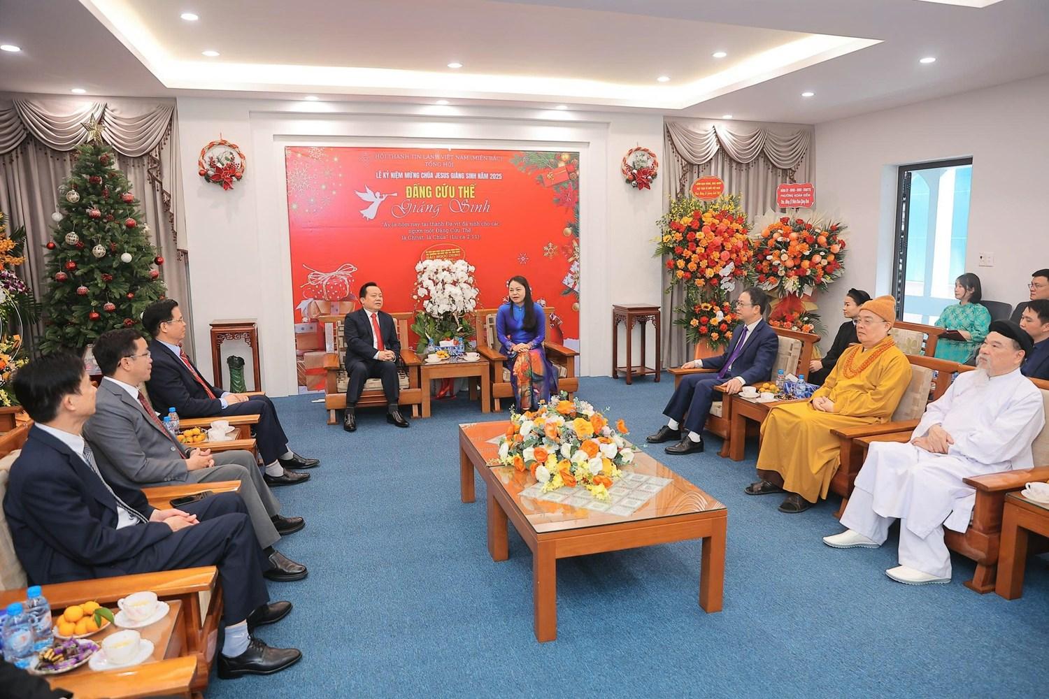 Thay mặt lãnh đạo Đảng, Nhà nước và Ủy viên Bộ Chính trị, Bí thư Trung ương Đảng, Chủ tịch Ủy ban Trung ương MTTQ Việt Nam Bùi Thị Minh Hoài, Phó Chủ tịch - Tổng Thư ký Ủy ban Trung ương MTTQ Việt Nam Nguyễn Thị Thu Hà giửi đến Mục sư, Hội trưởng Bùi Văn Sản và các vị Mục sư, Truyền đạo, tín hữu trong Hội thánh lời chúc mừng nồng ấm, thân tình và tốt đẹp nhất. Chúc Hội thánh và các tín hữu Tin lành đón mùa Giáng sinh an lành, hạnh phúc, tràn đầy yêu thương và đoàn kết trong khối đại đoàn kết toàn dân tộc.