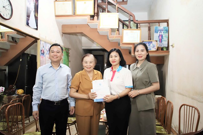 | Ủy viên TƯ Đảng, Phó Chủ tịch UBTƯ MTTQ Việt Nam, Chủ tịch Hội LHPN Việt Nam Nguyễn Thị Tuyến (thứ 2 từ phải qua) thăm và tặng quà Đảng viên Đinh Thị Tường (thứ 2 từ trái qua) |