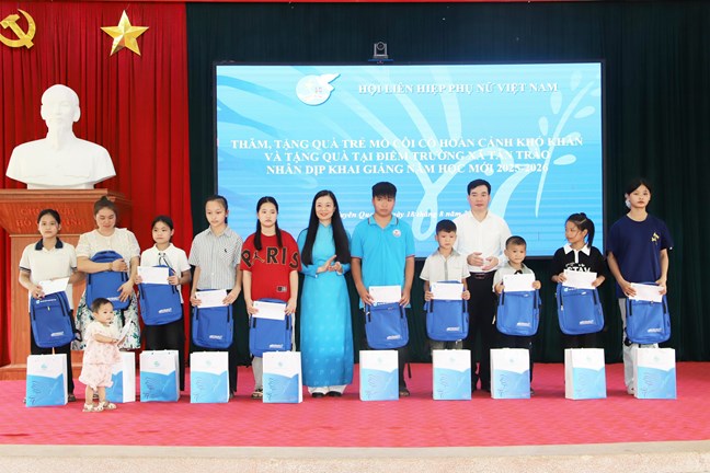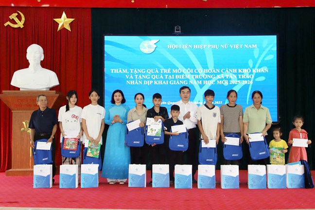 Nhân dịp khai giảng năm học mới 2025 - 2026, TƯ Hội LHPN Việt Nam trân trọng trao tặng 32 suất quà tới các em học sinh mồ côi có hoàn cảnh khó khăn, cùng 1 tủ sách trị giá 20 triệu đồng, 50 bình lọc nước trị giá 60 triệu đồng và 100 thùng sữa Vinamilk. Những món quà này chứa đựng tình yêu thương, niềm tin và sự kỳ vọng rằng các em học sinh sẽ vững vàng hơn trên hành trình học tập, mạnh mẽ vượt qua thử thách, nuôi dưỡng ước mơ để trở thành những mầm xanh của quê hương, tương lai của đất nước.