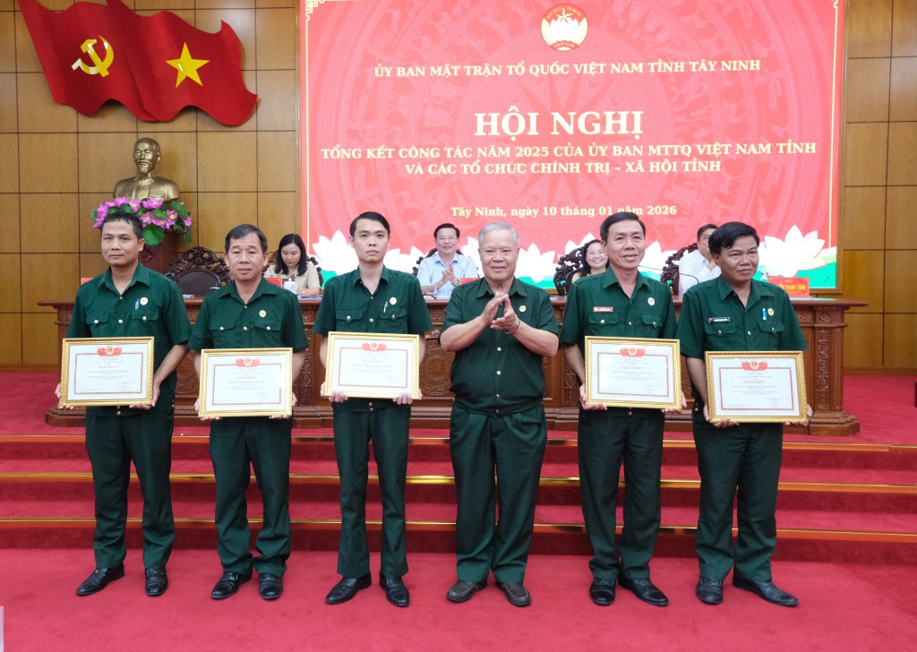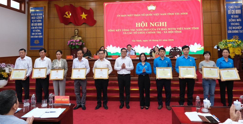 Dịp này, Ủy ban Trung ương MTTQ Việt Nam tặng Bằng khen cho 6 tập thể và 4 cá nhân; Ủy ban MTTQ Việt Nam tỉnh cùng các tổ chức chính trị – xã hội khen thưởng nhiều tập thể, cá nhân có thành tích xuất sắc trong công tác Mặt trận và phong trào năm 2025.