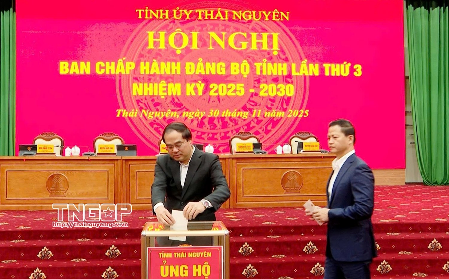 (Mặt trận) - Sáng 30/11, trước khi bắt đầu Hội nghị Ban Chấp hành Đảng bộ tỉnh, Tỉnh ủy Thái Nguyên tổ chức Lễ phát động ủng hộ đồng bào miền Trung chịu ảnh hưởng bão lũ. Các đại biểu đã dành một phút tưởng niệm những nạn nhân tử vong do thiên tai.