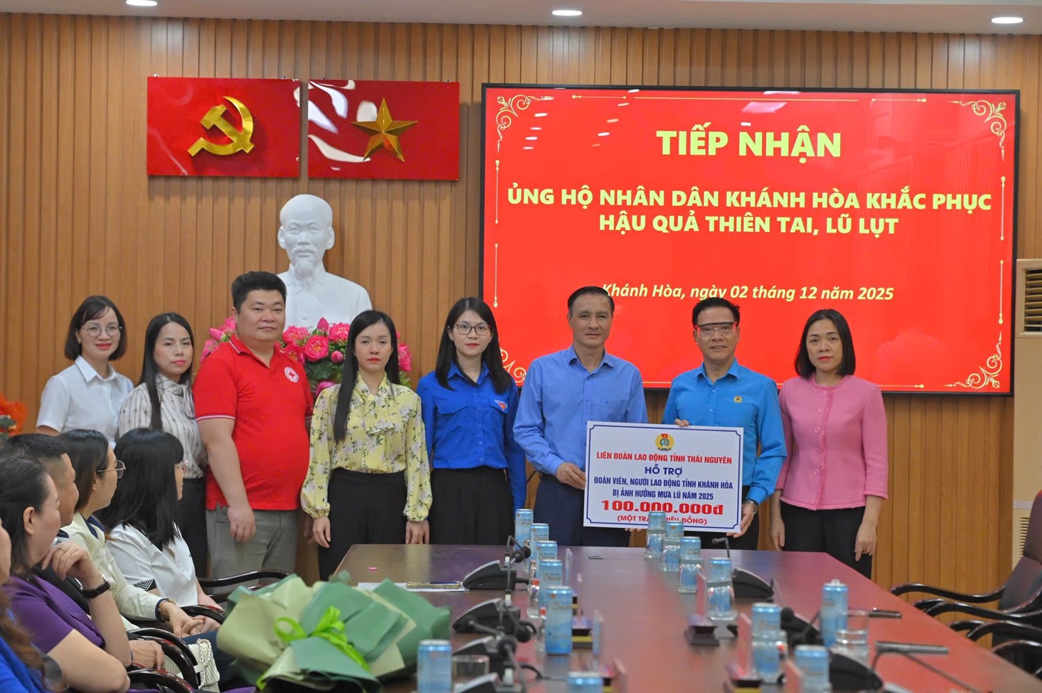 Đoàn trao số tiền 100 triệu đồng do Liên đoàn Lao động tỉnh Thái Nguyên hỗ trợ đoàn viên công đoàn, người lao động tỉnh Khánh Hoà bị ảnh hưởng do thiên tai.