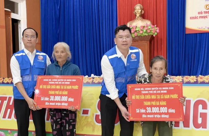 TPHCM đã hỗ trợ TP Đà Nẵng 15 tỷ đồng; trong đó hỗ trợ 800 triệu đồng để sửa chữa và trang bị thiết bị dạy học của các trường tại xã Nam Phước (TP Đà Nẵng).