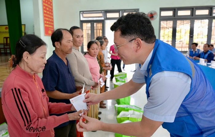 Đoàn cũng thăm hỏi và tặng quà đến 20 em học sinh (2 triệu đồng/phần); tặng quà 78 hộ dân (trị giá 2 triệu đồng/phần). Đoàn cũng hỗ trợ kinh phí xây dựng 2 căn nhà (60 triệu đồng/căn).
