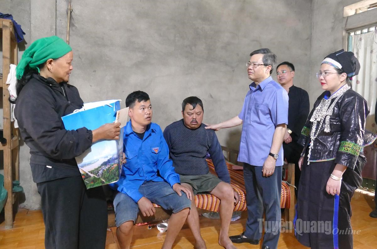 | Phó Bí thư Tỉnh ủy, Chủ tịch HĐND tỉnh Nguyễn Văn Sơn thăm, tặng quà gia đình ông Vàng Văn Hương, thôn Táo Thượng |