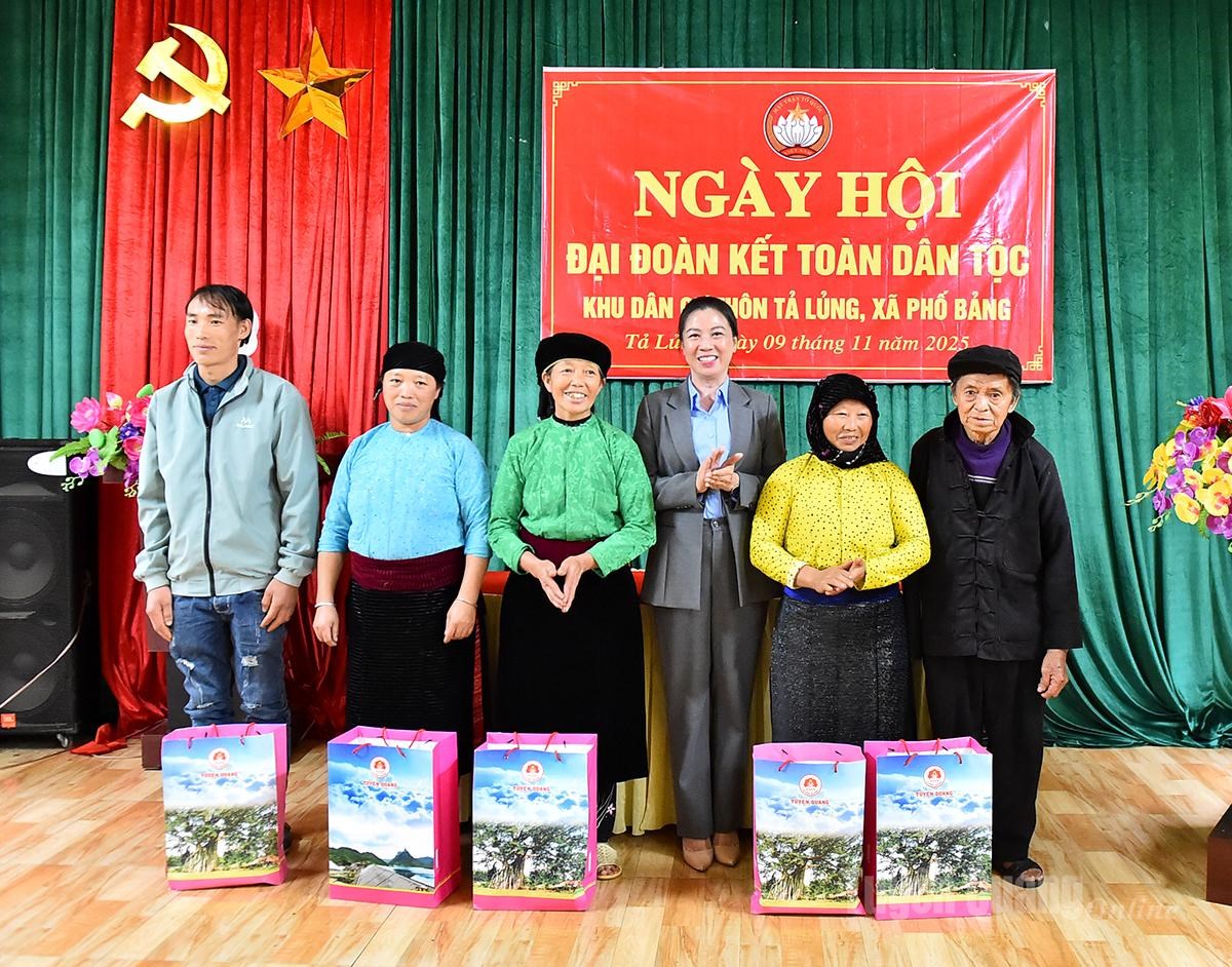 Chiều 9/11, bà Lê Thị Kim Dung, Phó Bí thư Thường trực Tỉnh ủy đã đến dự và chung vui cùng bà con nhân dân khu dân cư thôn Tả Lủng, xã Phố Bảng trong Ngày hội Đại đoàn kết toàn dân tộc năm 2025.
