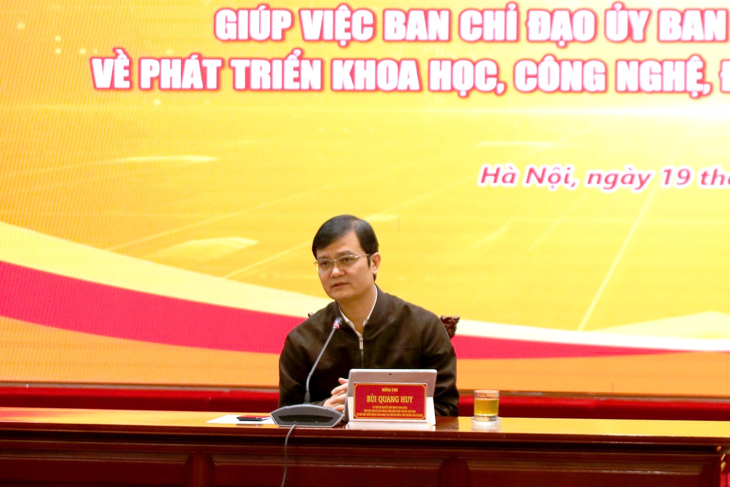 (Mặt trận) - Sáng 19/11, tại Hà Nội, ông Bùi Quang Huy, Ủy viên dự khuyết Trung ương Đảng, Phó Chủ tịch UBTƯ MTTQ Việt Nam, Bí thư thứ nhất Trung ương Đoàn TNCS Hồ Chí Minh, Phó Trưởng ban Chỉ đạo UBTƯ MTTQ Việt Nam về phát triển khoa học, công nghệ, đổi mới sáng tạo và chuyển đổi số đã chủ trì họp Tổ công tác giúp việc Ban Chỉ đạo.