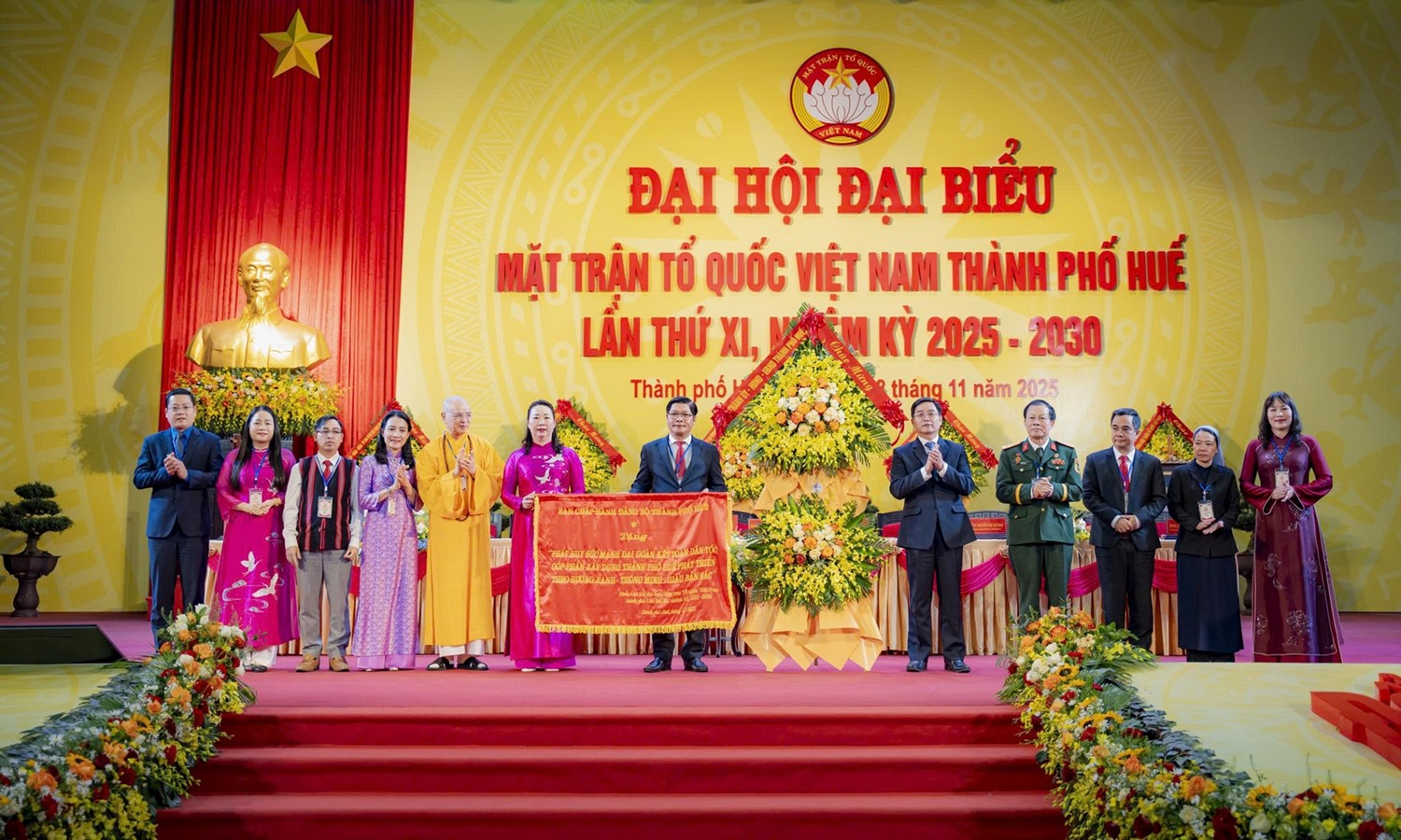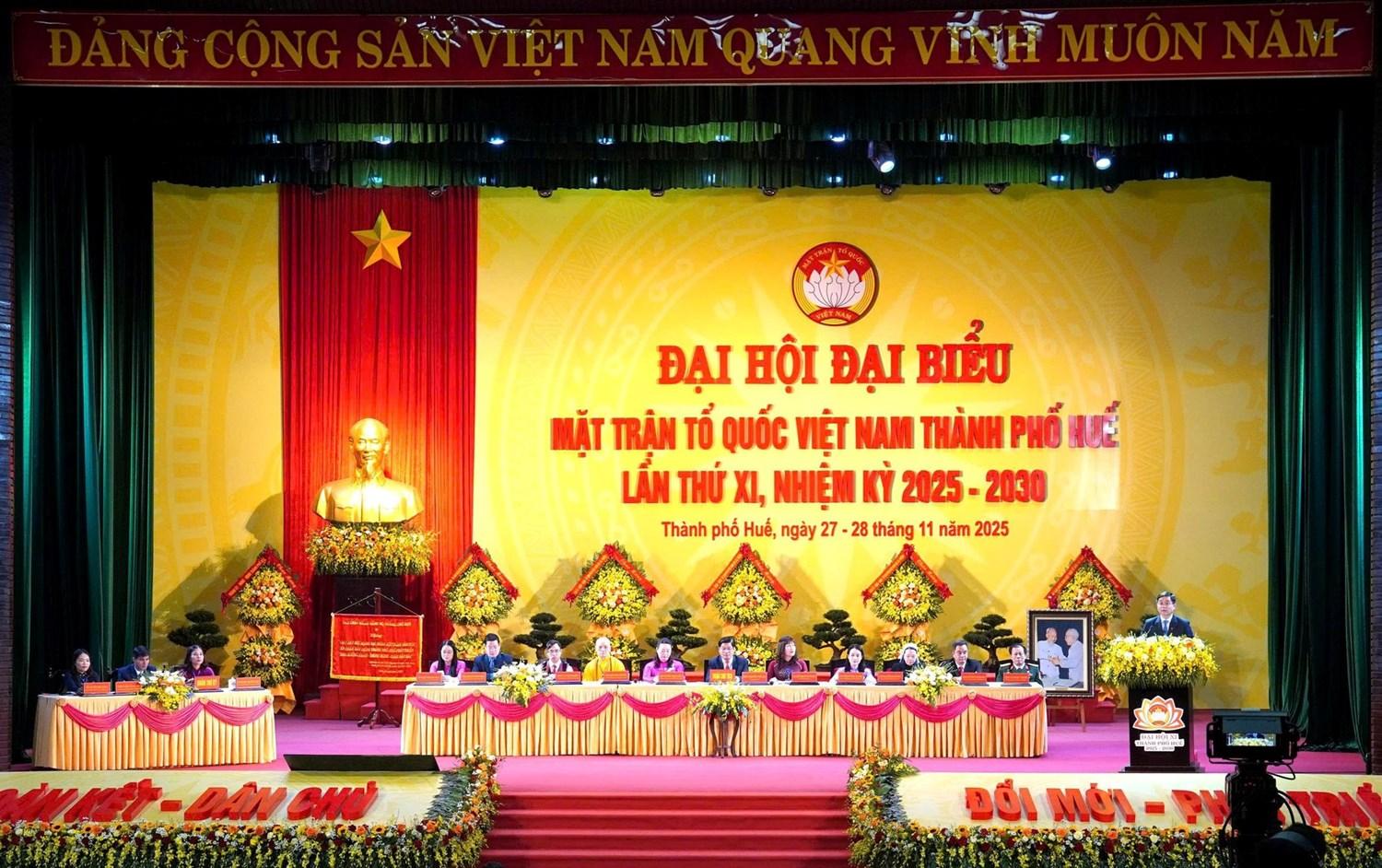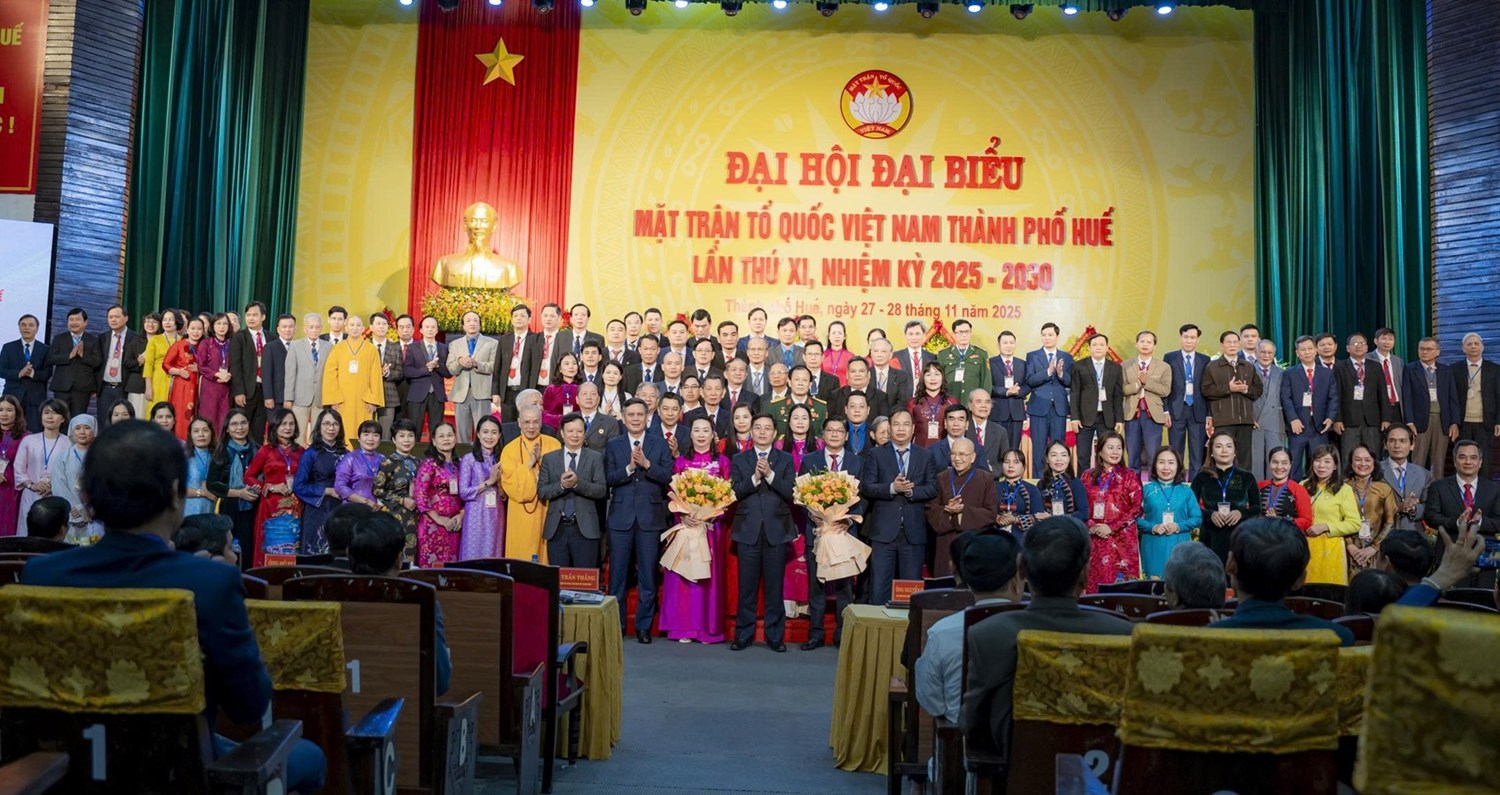 (Mặt trận) - Trong 2 ngày 27-28/11, Ban Thường trực Ủy ban Mặt trận Tổ quốc (MTTQ) Việt Nam thành phố Huế tổ chức Đại hội đại biểu MTTQ Việt Nam thành phố lần thứ XI, nhiệm kỳ 2025 - 2030, với sự tham gia của 500 đại biểu (300 đại biểu chính thức và 200 đại biểu khách mời) đại diện cho sức mạnh đoàn kết các tầng lớp nhân dân, các dân tộc, tôn giáo trên toàn thành phố.