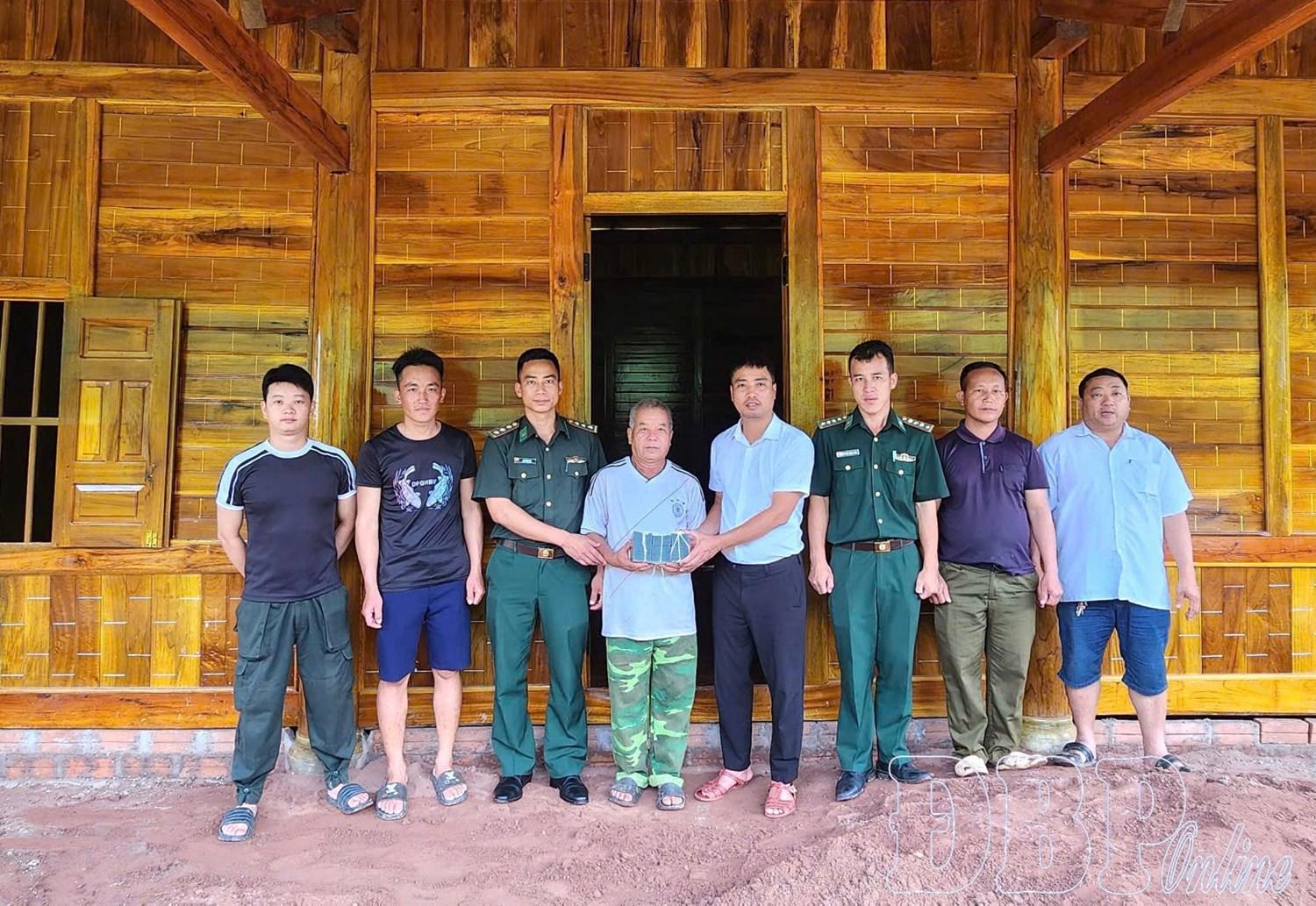 | Lãnh đạo UBND xã Nậm Kè trao kinh phí hỗ trợ làm nhà cho gia đình ông Thào A Tính |