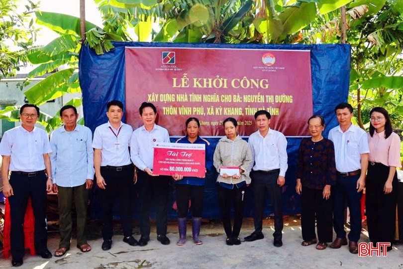| Lãnh đạo xã Kỳ Khang phối hợp với Ngân hàng Nông nghiệp Bắc Kỳ Anh trao 60 triệu đồng cho chị Nguyễn Thị Đường để xây dựng nhà ở |