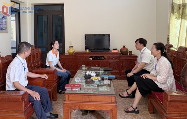 Cán bộ Ủy ban MTTQ Việt Nam phường Mạo Khê trò chuyện, trao đổi công việc với cán bộ làm công tác Mặt trận khu Xuân Viên 4, phường Mạo Khê