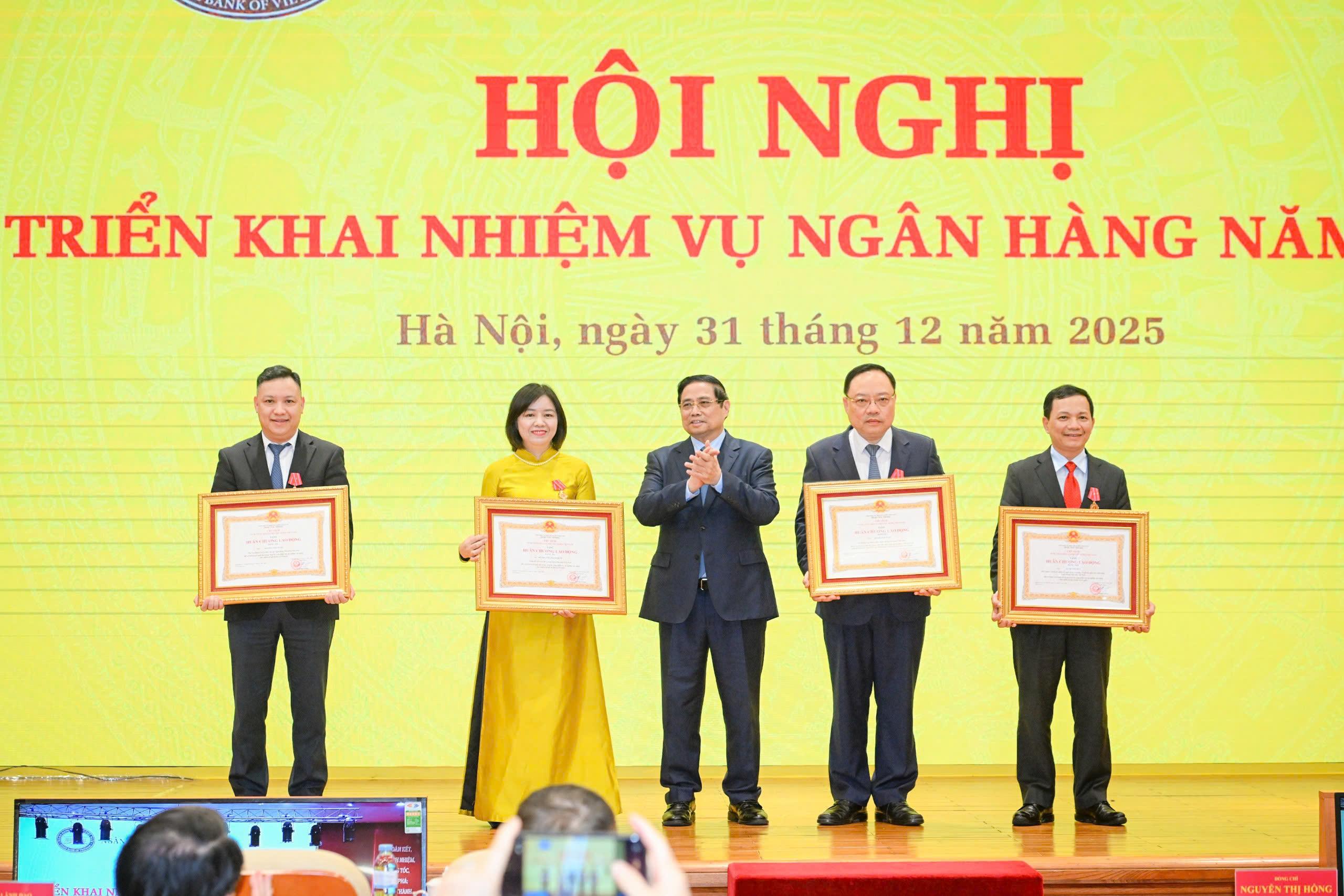 Tại hội nghị, thay mặt Lãnh đạo Đảng, Nhà nước, Thủ tướng Phạm Minh Chính trao Huân chương Lao động, Danh hiệu Chiến sĩ Thi đua toàn quốc, Bằng khen của Thủ tướng Chính phủ cho các tập thể, cá nhân có thành tích xuất sắc của ngành Ngân hàng.