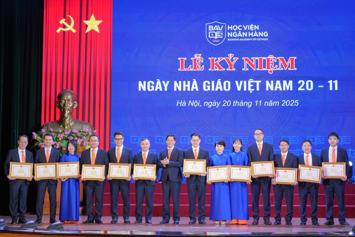 Ngày 20/11, Học viện Ngân hàng tổ chức Lễ kỷ niệm 43 năm Ngày Nhà giáo Việt Nam. Sự kiện không chỉ là dịp ôn lại truyền thống 64 năm xây dựng và phát triển, mà còn là diễn đàn khẳng định những bước chuyển mình mạnh mẽ của một cơ sở đào tạo hàng đầu trong bối cảnh chuyển đổi số. Phó Thống đốc Thường trực NHNN Việt Nam Đoàn Thái Sơn dự và phát biểu chỉ đạo tại buổi lễ.