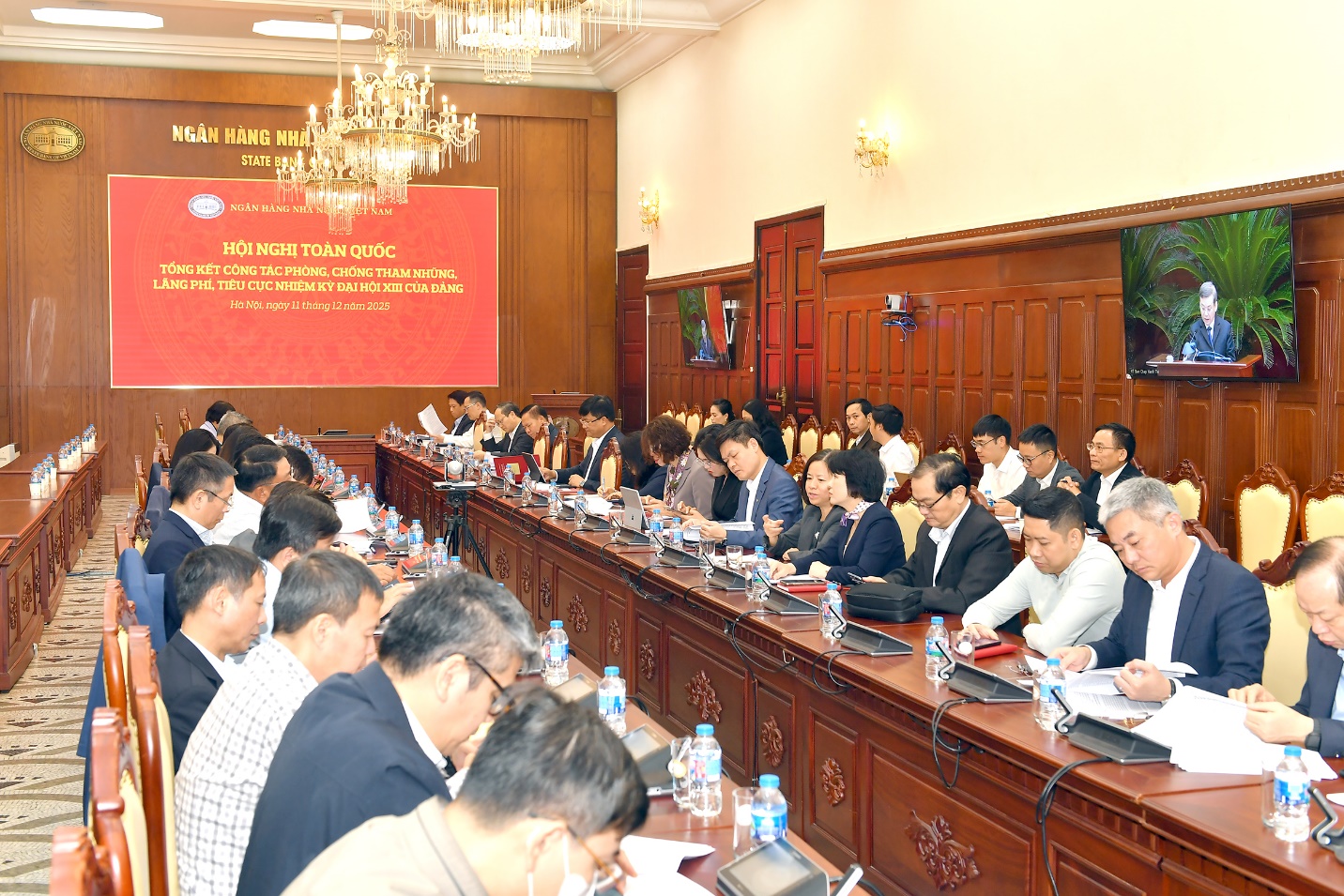 Tham dự Hội nghị trực tuyến tại điểm cầu NHNN có các đồng chí Ủy viên Ban Thường vụ Đảng ủy NHNN; các đồng chí thành viên Ban Chỉ đạo PCTNLPTC và tội phạm ngành Ngân hàng; đại diện Lãnh đạo các Vụ, Cục và tương đương thuộc NHNN Trung ương; Ban Quản lý dự án đầu tư xây dựng chuyên ngành của NHNN; các đồng chí Ủy viên Ủy ban Kiểm tra Đảng ủy NHNN; lãnh đạo các Ban tham mưu, giúp việc của Đảng ủy; công chức Cơ quan Ủy ban Kiểm tra Đảng ủy; cán bộ, công chức làm nhiệm vụ phòng, chống tham nhũng, lãng phí, tiêu cực thuộc Thanh tra NHNN.
