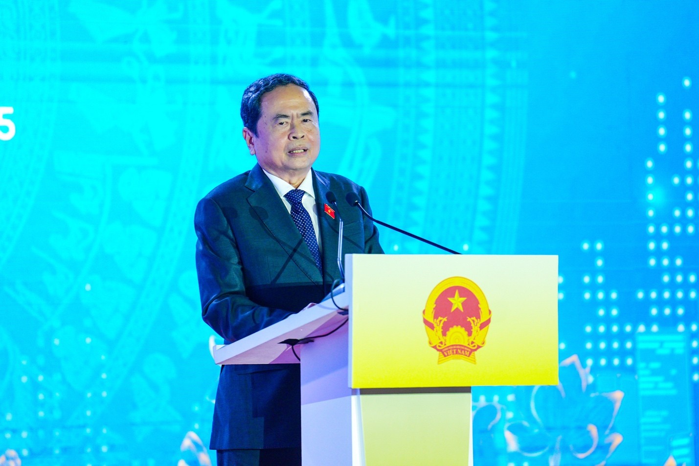 Ủy viên Bộ Chính trị, Chủ tịch Quốc hội Trần Thanh Mẫn phát biểu chỉ đạo tại buổi lễ