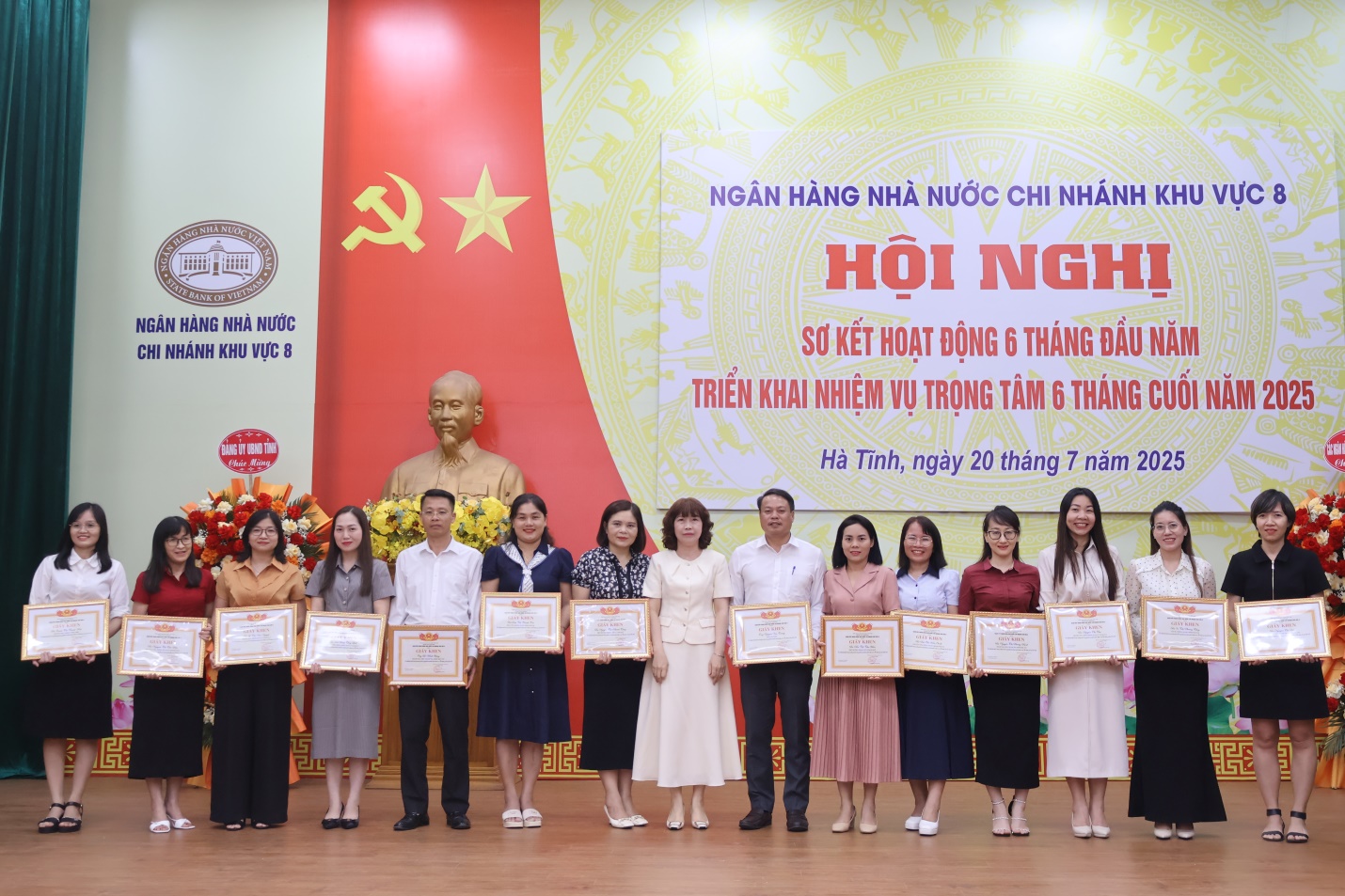 Nhân dịp này, NHNN Khu vực đã trao tặng các hình thức thi đua khen thưởng cho các cá nhân và tập thể có thành tích xuất sắc trong công tác chuyên môn. Hội nghị kết thúc trong không khí đoàn kết, thống nhất cao của toàn thể cán bộ công chức NHNN Khu vực 8, quyết tâm hoàn thành tốt các nhiệm vụ đã đặt ra trong 6 tháng cuối năm.