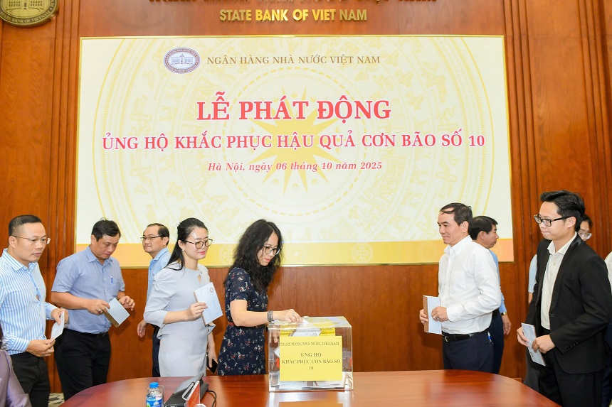 Hưởng ứng lời kêu gọi của Ủy ban Trung ương Mặt trận Tổ quốc Việt Nam (UBTWMTTQVN), phát huy tinh thần “tương thân tương ái” chung tay giúp đỡ đồng bào các địa phương bị thiệt hại do cơn bão số 10 gây ra, ngày 06/10/2025, tại trụ sở Ngân hàng Nhà nước Việt Nam (NHNN), NHNN đã tổ chức Lễ phát động ủng hộ đồng bào khắc phục thiệt hại do cơn bão số 10 gây ra.