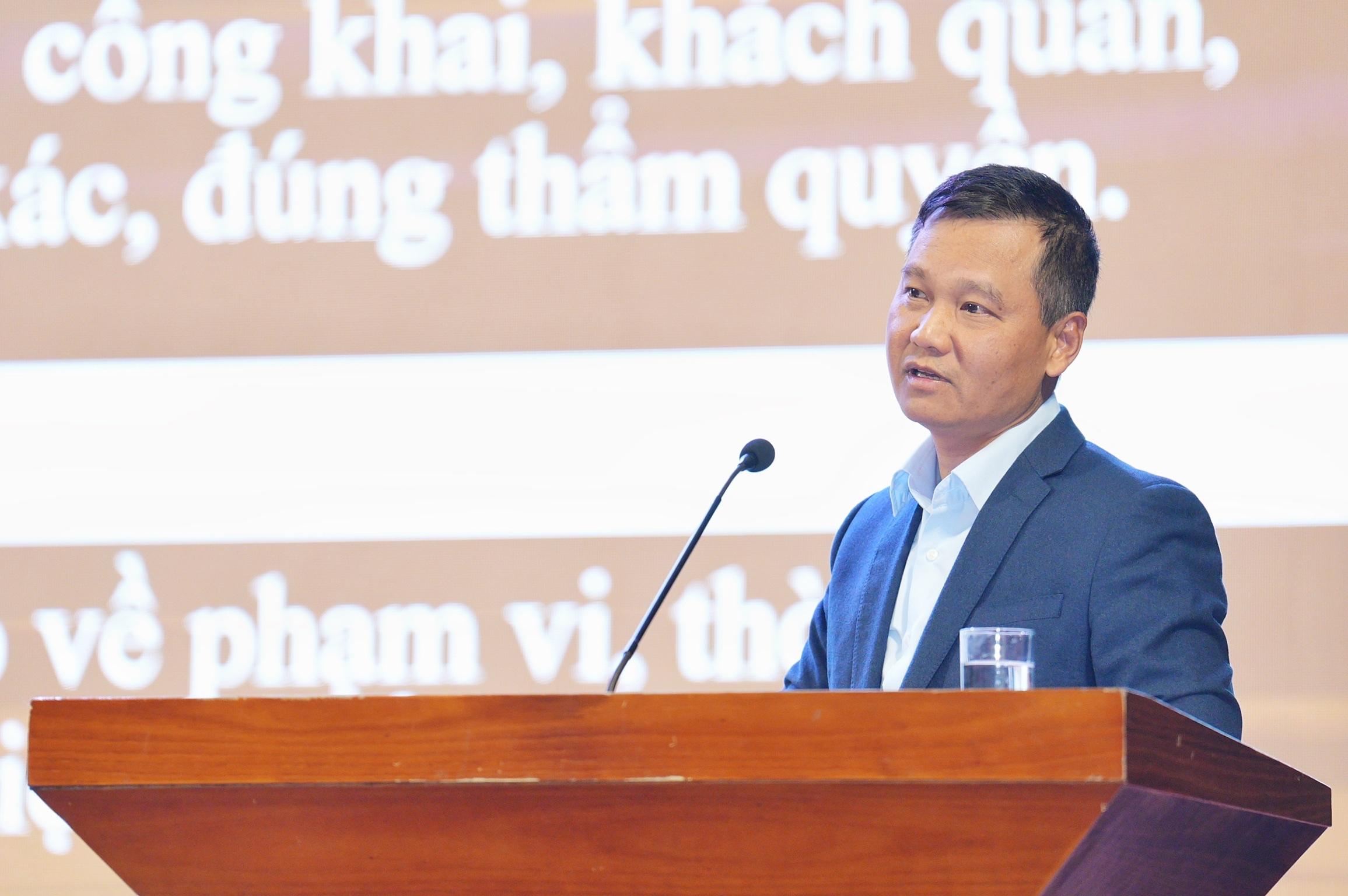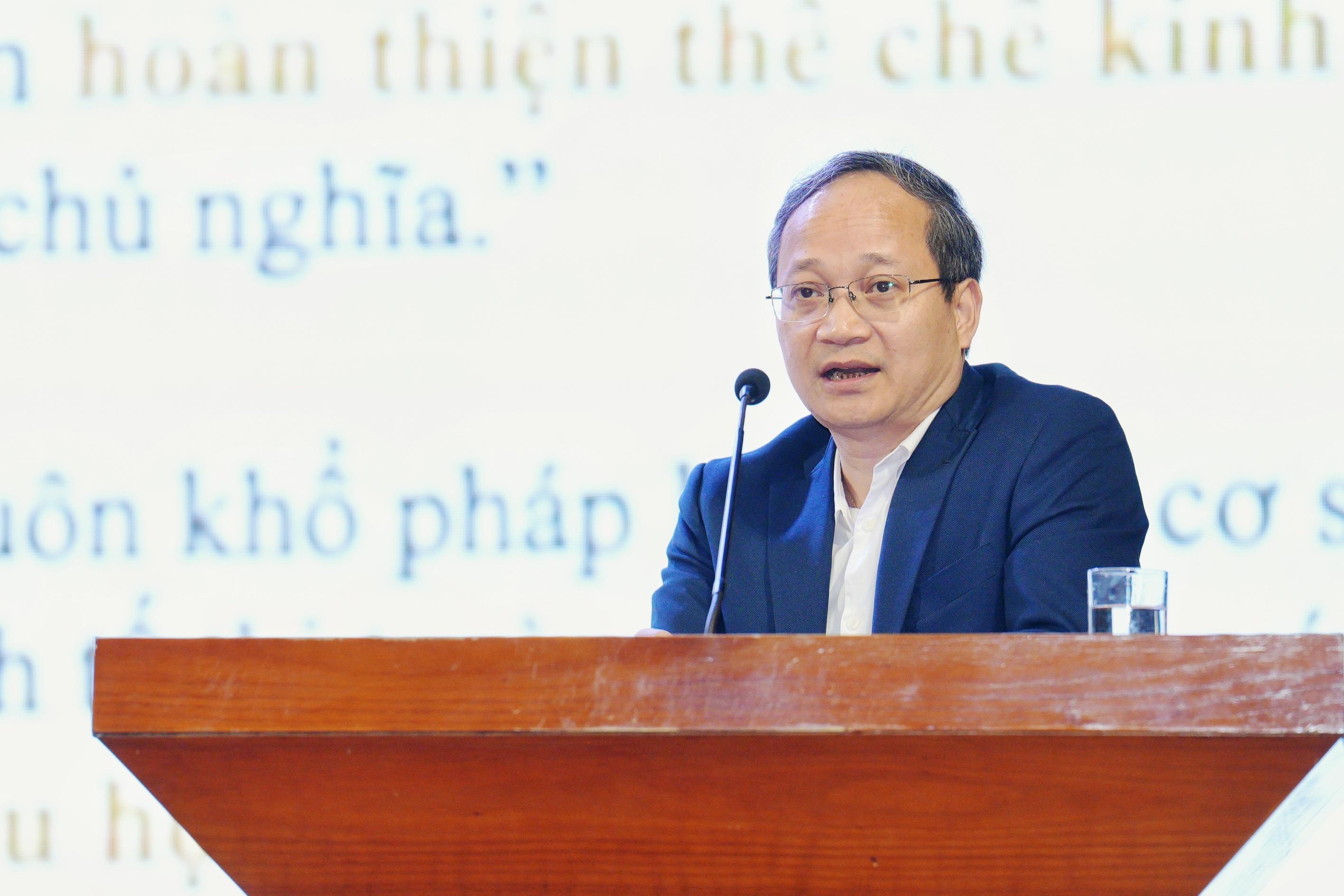 Vụ trưởng Vụ Pháp chế Tạ Quang Đôn trình bày về công tác hoàn thiện thể chế trong lĩnh vực ngân hàng