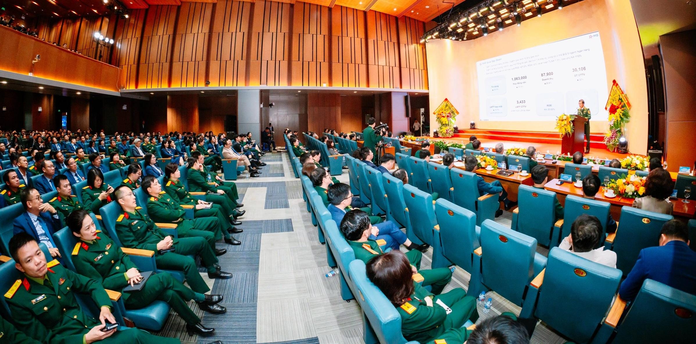 Báo cáo tại Hội nghị, Thiếu tướng Lưu Trung Thái - Bí thư Đảng ủy, Chủ tịch HĐQT MB cho biết, năm 2025, dù đối mặt với nhiều thách thức, MB đã nỗ lực hoàn thành tốt các chỉ tiêu do Đại hội đồng cổ đông đề ra, ghi nhận tăng trưởng tích cực trên cả quy mô, hiệu quả và chất lượng tài sản. Theo đó, tổng tài sản MB đạt gần 1,6 triệu tỷ đồng. Các chỉ số về hiệu quả và an toàn duy trì ổn định. MB không ngừng củng cố và gia tăng thị phần tín dụng và tăng trưởng huy động vốn. MB cũng là ngân hàng chuyển đổi số mạnh mẽ, hoàn thành toàn diện các mục tiêu về khoa học công nghệ và chuyển đổi số.