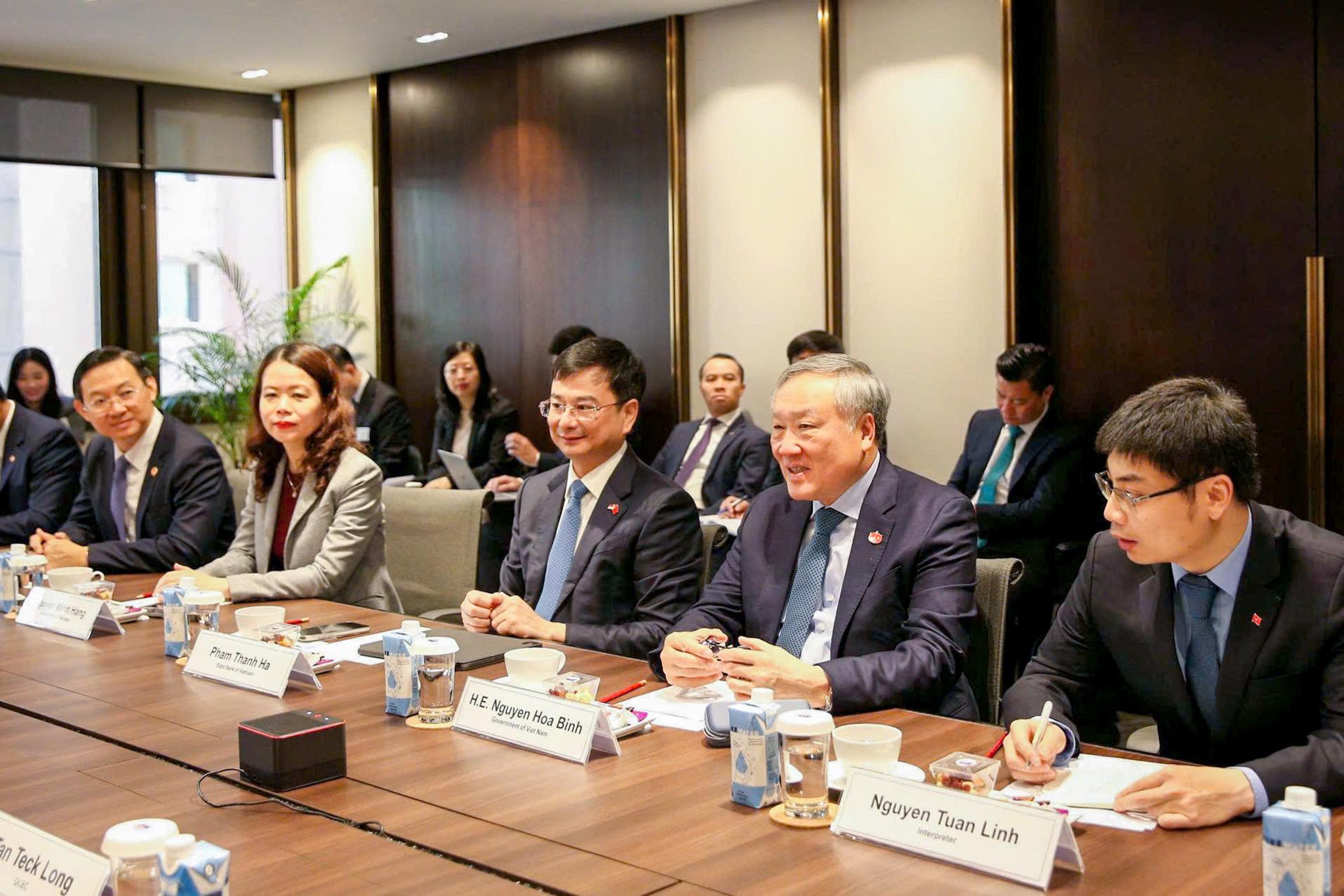 Tại cuộc hội kiến, Phó Thủ tướng Thường trực Chính phủ Nguyễn Hòa Bình đã chia sẻ với Phó Thủ tướng Gan Kim Yong về việc Việt Nam vừa thành lập TTTC với mục tiêu huy động các nguồn lực tài chính chất lượng cao, đặc biệt là vốn đầu tư phục vụ cho sự phát triển bền vững của đất nước. Đoàn công tác bày tỏ mong muốn tìm hiểu chiến lược phát triển TTTC của Singapore nhằm áp dụng những kinh nghiệm quý báu vào việc triển khai hiệu quả TTTC tại Việt Nam.
