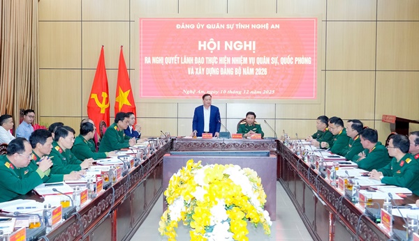 Sáng 10/12, Đảng ủy Quân sự tỉnh tổ chức Hội nghị ra Nghị quyết lãnh đạo thực hiện nhiệm vụ quân sự, quốc phòng và xây dựng Đảng bộ năm 2026.