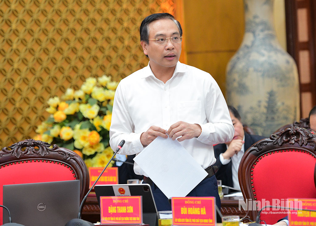 Đối với Báo cáo đánh giá các tiêu chí, điều kiện để đến năm 2030 tỉnh Ninh Bình trở thành thành phố trực thuộc Trung ương, các ngành xem xét hiện nay còn thiếu bao nhiêu tiêu chí, cách làm thế nào để đạt được. Đối với các khâu đột phá, định hướng phát triển kinh tế, các ngành cần thảo luận, phân tích, làm rõ từng nội dung, từng vấn đề, tìm ra giải pháp thực hiện, có thời gian và kết quả cụ thể.