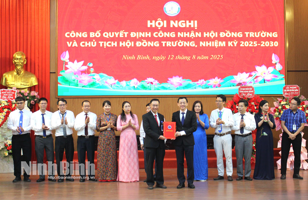 Tại hội nghị đã công bố Quyết định số 2354/QĐ-BYT ngày 17/7/2025 của Bộ trưởng Bộ Y tế công nhận Hội đồng trường Trường Đại học Điều dưỡng Nam Định nhiệm kỳ 2025-2030 gồm 19 thành viên (trong đó có 4 thành viên đương nhiên; 1 thành viên đại diện Bộ Y tế; 5 thành viên đại diện giảng viên Trường Đại học Điều dưỡng Nam Định; 4 thành viên đại diện viên chức và người lao động; 5 thành viên đại diện cộng đồng xã hội); Quyết định số 2355/QĐ-BYT ngày 17/7/2025 công nhận Chủ tịch Hội đồng trường Trường Đại học Điều dưỡng Nam Định nhiệm kỳ 2025-2030 đối với ông Lê Thanh Tùng, Thầy thuốc Nhân dân, Phó Giáo sư, Tiến sĩ, Bác sĩ, Bí thư Đảng ủy, Chủ tịch Hội đồng trườngTrường Đại học Điều dưỡng Nam Định nhiệm kỳ 2020-2025.