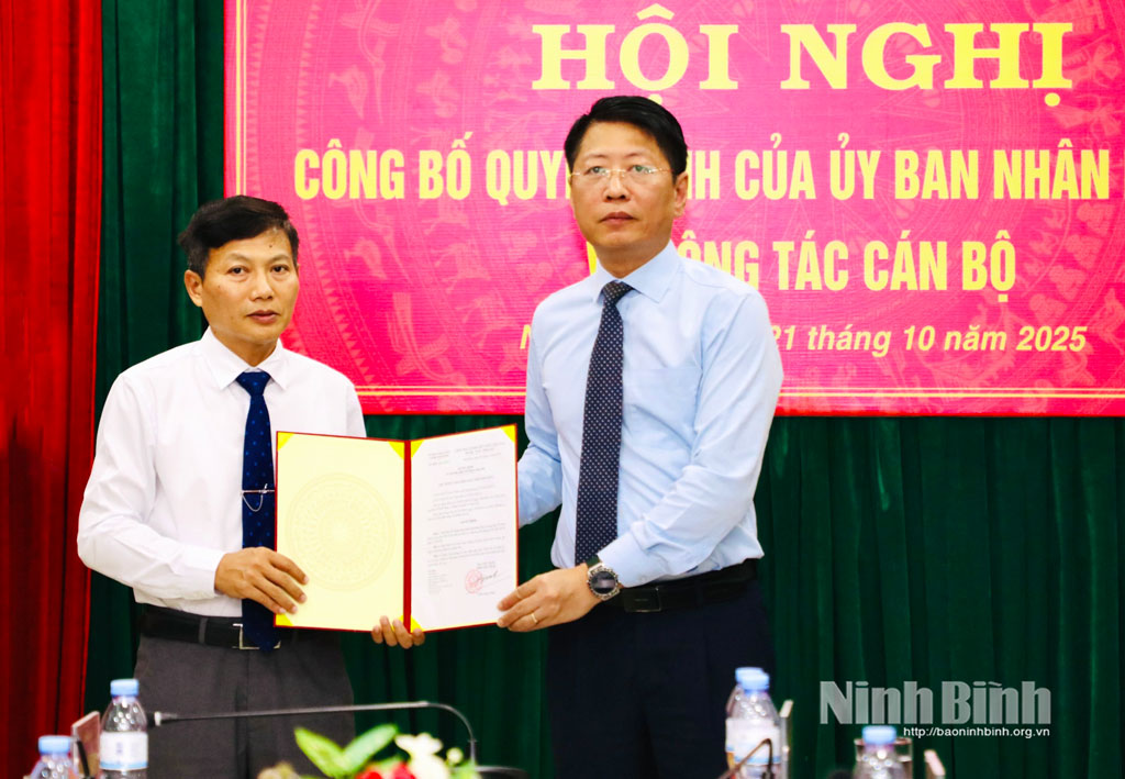 Tại hội nghị, đồng chí Giám đốc Sở Nội vụ đã công bố Quyết định của Chủ tịch UBND tỉnh về việc tiếp nhận, bổ nhiệm công chức đối với đồng chí Đinh Văn Bình, Phó Trưởng Ban Tổ chức Tỉnh ủy giữ chức Phó Giám đốc Sở Nội vụ. Thời hạn bổ nhiệm 5 năm kể từ ngày 21/10/2025.
