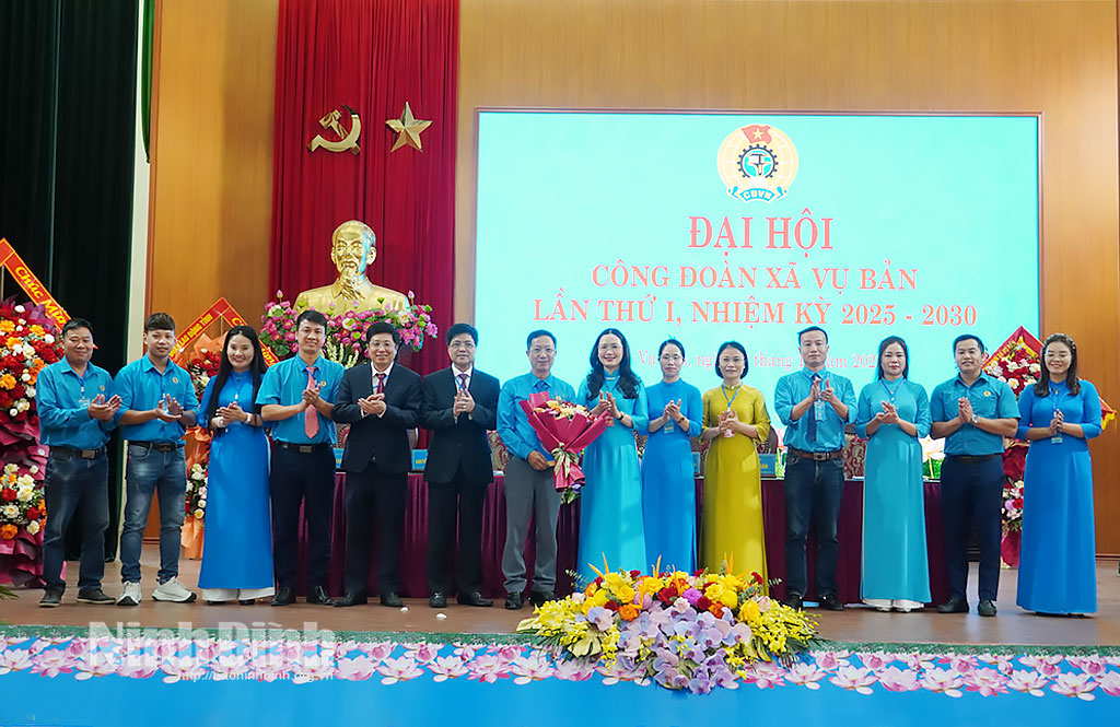 Đại hội đã công bố Quyết định của Ban Thường vụ LĐLĐ tỉnh chỉ định Ban Chấp hành, Ban Thường vụ, các chức danh chủ chốt của Công đoàn xã Vụ Bản nhiệm kỳ 2025-2030; chỉ định đại biểu đi dự Đại hội Công đoàn tỉnh Ninh Bình nhiệm kỳ 2025-2030. Đồng chí Nguyễn Thành Minh được chỉ định giữ chức Chủ tịch Công đoàn xã Vụ Bản nhiệm kỳ 2025-2030.
