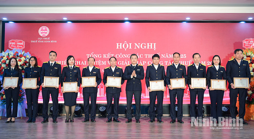 Nhân dịp này, các tập thể, cá nhân hoàn thành xuất sắc nhiệm vụ năm 2025 đã được Cục Thuế và Thuế tỉnh Ninh Bình tặng Giấy khen.