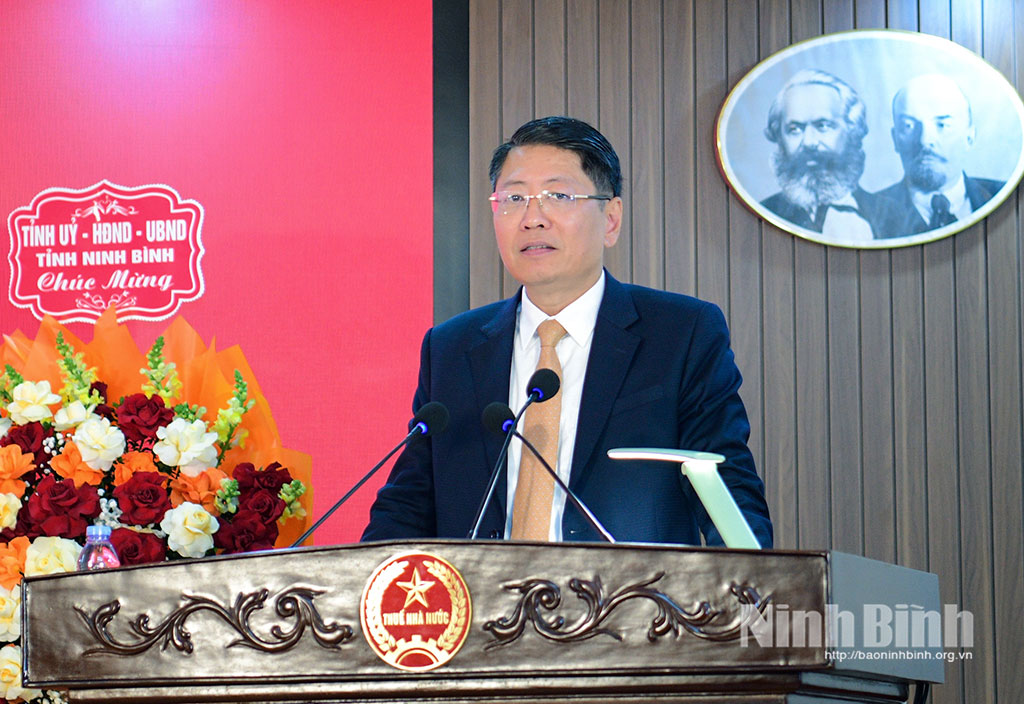 Nhấn mạnh nhiệm vụ trọng tâm năm 2026, đồng chí Phó Chủ tịch Thường trực UBND tỉnh đề nghị ngành Thuế cần tiếp tục bám sát sự lãnh đạo, chỉ đạo của Bộ Tài chính, Cục Thuế và Tỉnh ủy, UBND tỉnh; chủ động tham mưu các giải pháp quản lý thu ngân sách phù hợp với tình hình thực tiễn của địa phương; phấn đấu hoàn thành và hoàn thành vượt mức dự toán thu ngân sách được giao trong năm 2026. Đẩy mạnh cải cách thủ tục hành chính thuế, chuyển đổi số trong quản lý thuế; nâng cao chất lượng phục vụ người nộp thuế; tạo môi trường thuận lợi, minh bạch, công bằng cho hoạt động sản xuất, kinh doanh, góp phần cải thiện môi trường đầu tư, kinh doanh của tỉnh. Tăng cường công tác quản lý thu, chống thất thu ngân sách; tập trung vào các lĩnh vực, địa bàn có rủi ro cao về thuế; nâng cao hiệu quả công tác thanh tra, kiểm tra, gắn với phòng, chống tham nhũng, tiêu cực trong thực thi công vụ. Chú trọng công tác xây dựng đội ngũ công chức Thuế có bản lĩnh chính trị vững vàng, đạo đức công vụ trong sáng, chuyên môn nghiệp vụ cao; tăng cường kỷ luật, kỷ cương hành chính; xây dựng ngành Thuế tỉnh Ninh Bình ngày càng chuyên nghiệp, hiện đại. Tăng cường phối hợp chặt chẽ với các sở, ban, ngành, chính quyền các cấp trong công tác quản lý thu NSNN; đẩy mạnh công tác tuyên truyền, hỗ trợ người nộp thuế, tạo sự đồng thuận và chia sẻ trong toàn xã hội.