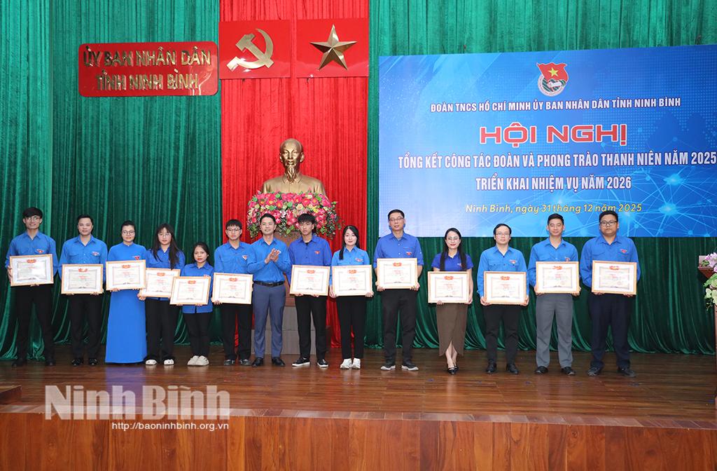 Nhân dịp này, Đoàn TNCS Hồ Chí Minh UBND tỉnh đã công bố các quyết định khen thưởng, biểu dương các tập thể, cá nhân có thành tích xuất sắc trong công tác Đoàn và phong trào thanh niên năm 2025.
