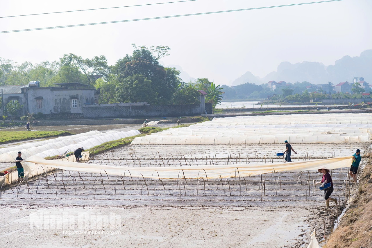 Thời điểm này, bà con nông dân các xã có diện tích lúa cấy ngoài đê, thấp trũng cũng đang tập trung chăm sóc mạ, chuẩn bị gieo cấy lúa vụ Đông Xuân. Trước diễn biến thời tiết rét đậm, rét hại, nhiều biện pháp được áp dụng nhằm giữ ấm cho mạ, đồng thời chủ động ngăn chuột phá hoại.