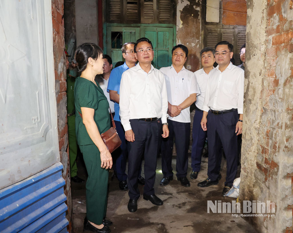 Phát biểu tại buổi kiểm tra, đồng chí Bí thư Tỉnh ủy Đặng Xuân Phong yêu cầu: Sở Xây dựng phối hợp với phường Nam Định và các cơ quan liên quan thường xuyên công bố, cảnh báo, tuyên truyền về mức độ nguy hiểm của các khu chung cư cũ để người dân nắm được; giao Sở Xây dựng là đầu mối chủ trì phối hợp với phường Nam Định và các cơ quan liên quan thực hiện rà soát, xây dựng phương án cụ thể để báo cáo, tham mưu cho Tỉnh ủy, HĐND, UBND tỉnh có giải pháp xử lý; yêu cầu phường Nam Định chủ động phương án di dời những hộ dân đang sinh sống tại các chung cư cũ nguy hiểm khi thời tiết có những diễn biến bất thường, bảo đảm tuyệt đối an toàn tính mạng và tài sản của Nhân dân.