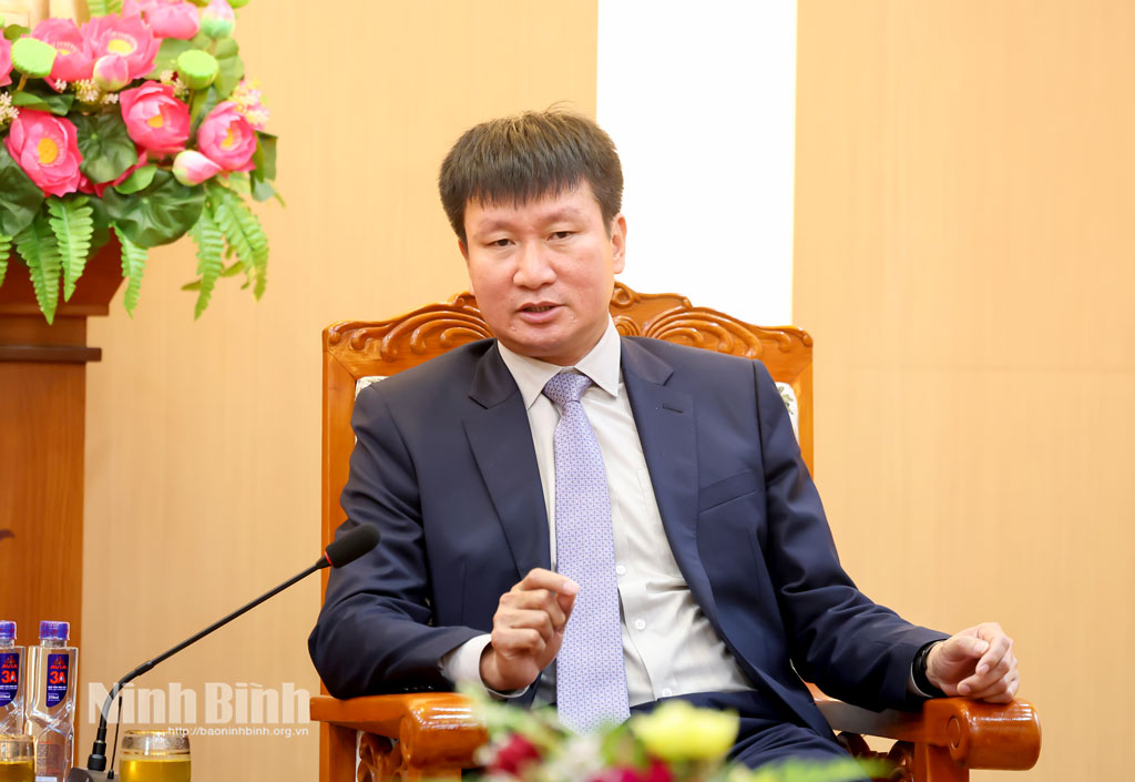 Đồng chí Phó Bí thư Tỉnh ủy, Chủ tịch UBND tỉnh Trần Huy Tuấn nêu rõ: Định hướng chiến lược của tỉnh trong thời gian tới là phát triển theo hướng xanh, bền vững, hài hòa. Tập trung bảo tồn các giá trị văn hóa song song với việc phát triển các sản phẩm du lịch đặc sắc, biến di sản thành tài sản. Trong lĩnh vực công nghiệp sẽ ưu tiên thu hút các dự án công nghiệp công nghệ cao và nghiên cứu chế tạo. Tỉnh Ninh Bình cam kết tạo điều kiện thuận lợi nhất cho doanh nghiệp trong việc tiếp cận đất đai và triển khai dự án.