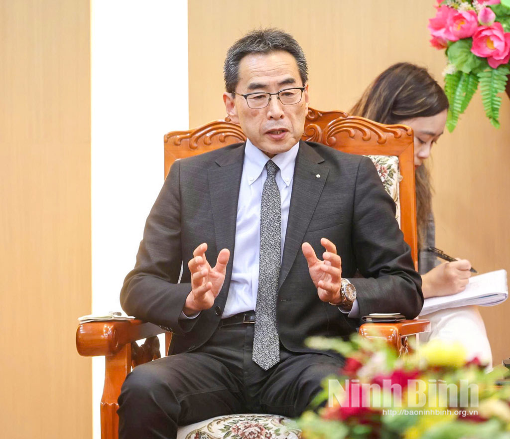 Đồng chí Chủ tịch UBND tỉnh cũng bày tỏ tin tưởng, với những nét tương đồng về văn hóa, đặc biệt là mối quan hệ hợp tác, tin cậy và tin tưởng lẫn nhau, hai bên sẽ sớm tìm được những điểm chung để thúc đẩy các dự án hợp tác hiệu quả, nhất là trong các lĩnh vực thế mạnh của Ninh Bình và của các doanh nghiệp Nhật như: Du lịch, nông nghiệp, chuỗi cung ứng bán lẻ...