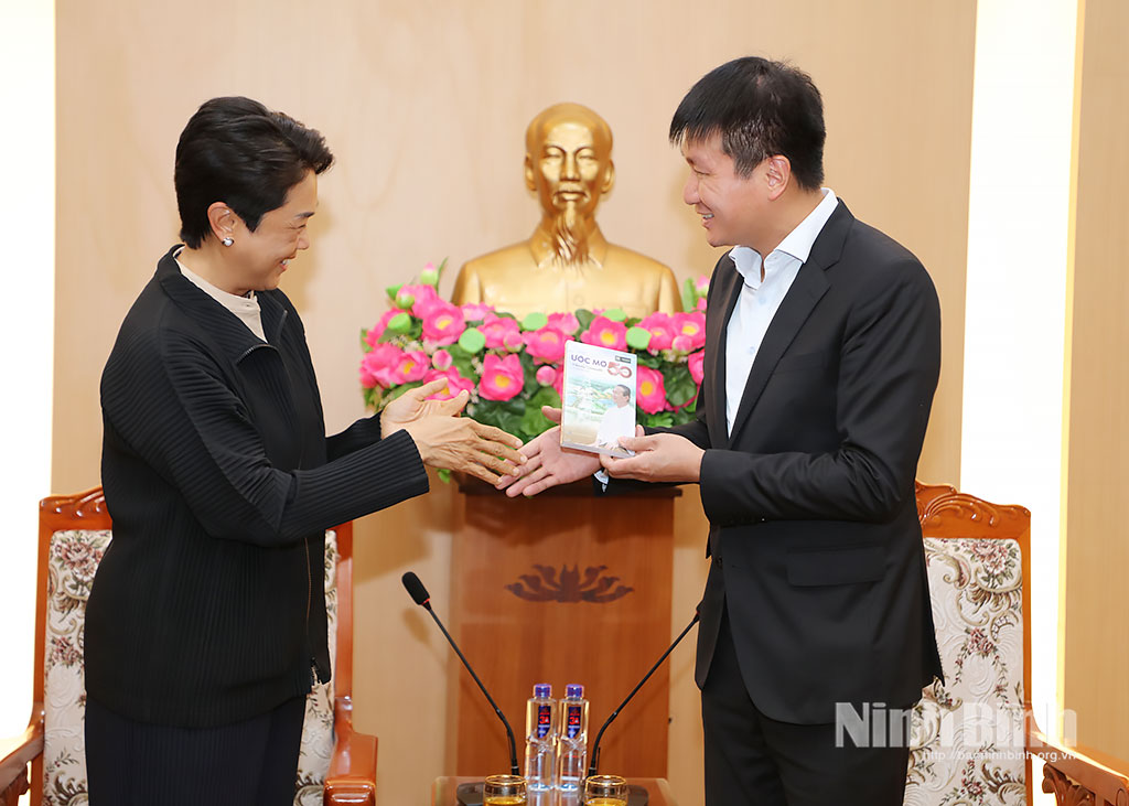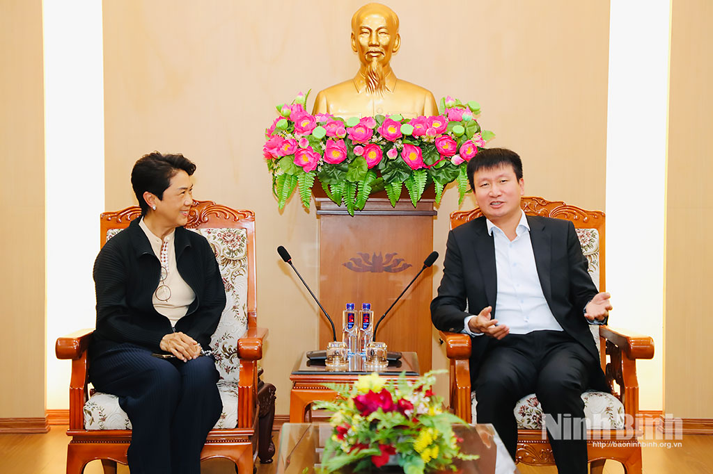 Chào mừng bà Somhatai Panichewa và Tập đoàn Amata đến tìm hiểu môi trường đầu tư tại tỉnh, đồng chí Chủ tịch UBND tỉnh Trần Huy Tuấn đã thông tin khái quát về tỉnh Ninh Bình mới sau hợp nhất, nhất là về định hướng quy hoạch phát triển, cải thiện môi trường đầu tư kinh doanh, cơ hội và các chính sách thu hút đầu tư nước ngoài. Theo đó, tỉnh Ninh Bình mới được thành lập trên cơ sở hợp nhất ba tỉnh Ninh Bình, Hà Nam và Nam Định, tạo nên đơn vị hành chính có quy mô lớn hơn về diện tích, dân số, đồng thời mở ra không gian phát triển mới với tiềm năng và dư địa phát triển lớn.