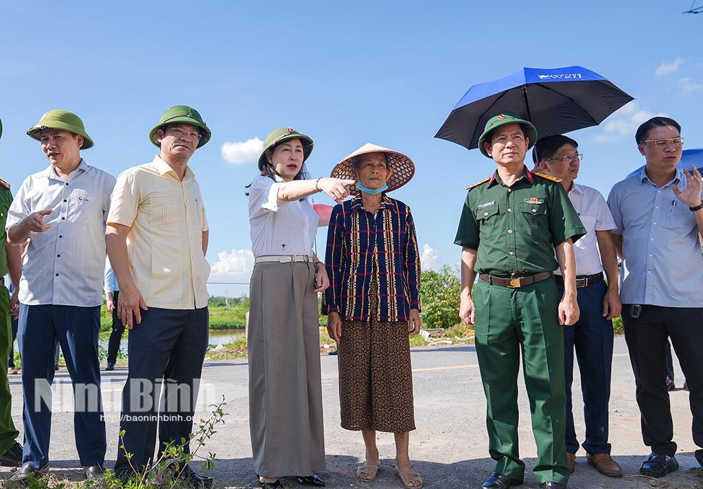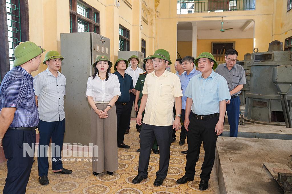 Trước đó, đồng chí Phó Bí thư Thường trực Tỉnh ủy Đinh Thị Lụa và lãnh đạo các sở, ngành của tỉnh đã đi kiểm tra, khảo sát tình hình thực tế tại Trạm bơm Quế I; Trạm bơm Quế II; kè sông Đáy; Kho vật tư phục vụ phòng, chống lụt bão “4 tại chỗ” và công tác khắc phục thiệt hại sau cơn bão số 5 tại Tổ dân phố Đanh Xá, phường Kim Bảng.