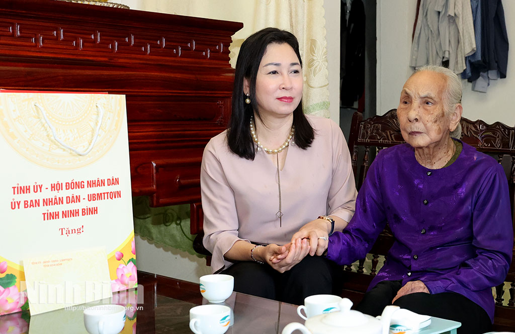 Đoàn đã đến thăm, tặng quà Bà mẹ Việt Nam Anh hùng Cao Thị Hợi, sinh năm 1926, trú tại thôn Đông Phú, phường Hoa Lư. Mẹ sinh 10 người con, trong đó có 2 con trai là liệt sĩ. Tại phố 6 Đông Thành, đoàn đã thăm Bà mẹ Việt Nam anh hùng Lê Thị Thận, sinh năm 1932. Mẹ có chồng và con trai đều là liệt sĩ. Đoàn cũng đến thăm ông Nguyễn Mạnh Thân, sinh năm 1925, trú tại Phố Nhật Tân, Nguyên Chánh án Tòa án nhân dân tỉnh Hà Nam Ninh, nguyên Bí thư Thị ủy Ninh Bình, là lão thành cách mạng và là bố liệt sĩ Trần Ngọc Trung.