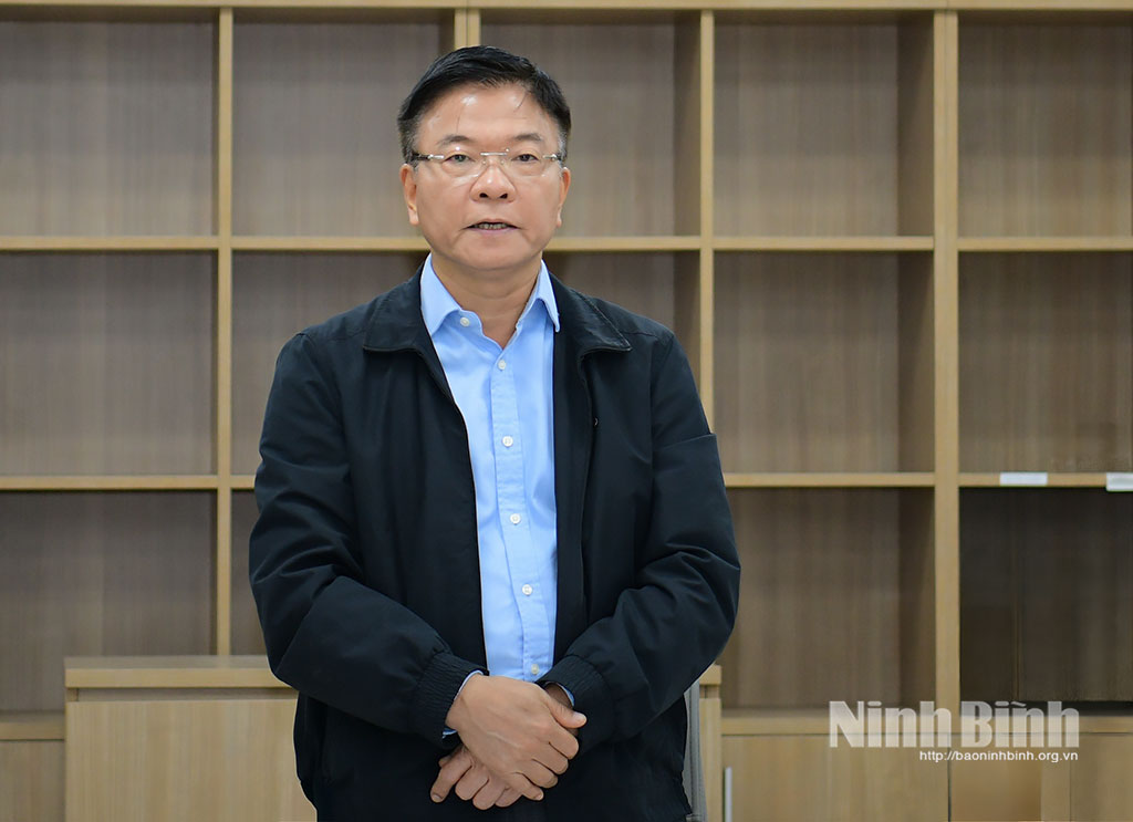 Tham dự buổi làm việc, về phía tỉnh Ninh Bình có các đồng chí: Đặng Xuân Phong, Ủy viên Trung ương Đảng, Bí thư Tỉnh ủy, Trưởng Đoàn đại biểu Quốc hội tỉnh; Trần Huy Tuấn, Phó Bí thư Tỉnh ủy, Chủ tịch UBND tỉnh; Đinh Văn Tiên, Ủy viên Ban Thường vụ Tỉnh ủy, Giám đốc Sở Nông nghiệp và Môi trường; Nguyễn Văn Lượng, Ủy viên Ban Thường vụ Tỉnh ủy, Giám đốc Sở Xây dựng; lãnh đạo một số ban, ngành chức năng của tỉnh.