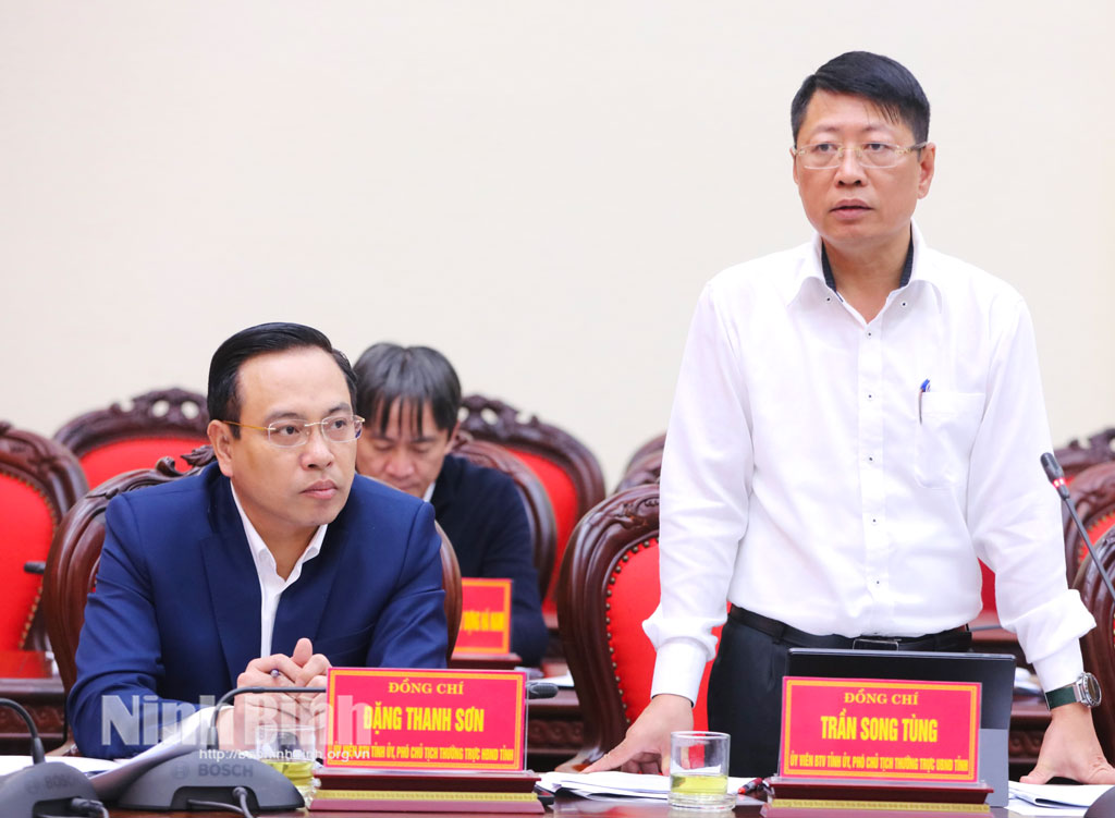Về tình hình triển khai các dự án trọng điểm của tỉnh, đối với 37 dự án đầu tư công có tổng vốn kế hoạch đầu tư công của các dự án đầu tư công trọng điểm năm 2025 là 14.078 tỷ đồng. Hiện nay, đã giải ngân được khoảng 9.679 tỷ đồng, đạt 69% số vốn kế hoạch giao. Cụ thể, 18 dự án, đề án thực hiện theo chỉ đạo của Thường trực Tỉnh uỷ đến nay có 15 dự án đã được cấp có thẩm quyền quyết định phê duyệt chủ trương đầu tư (gồm 7 dự án nhóm A, 8 dự án nhóm B); đã quyết định đầu tư và đang thực hiện 8 dự án; đang triển khai thực hiện thủ tục thẩm định, quyết định đầu tư đối với 7 dự án và đang nghiên cứu triển khai 3 dự án, nhiệm vụ. Đối với 19 dự án có tổng mức đầu tư từ 2.000 tỷ đồng trở lên, hiện có 6 dự án nhóm A, 3 dự án nhóm B và 10 dự án đang trong giai đoạn nghiên cứu phương án thực hiện. Đến nay, có 9 dự án đã phê duyệt chủ trương đầu tư, đã quyết định đầu tư và đang thực hiện 8 dự án; đang triển khai thực hiện thủ tục thẩm định, quyết định đầu tư đối với 1 dự án (dự án Xây dựng Trung tâm hành chính tập trung tỉnh Ninh Bình) và đang nghiên cứu triển khai đối với 10 dự án, nhiệm vụ.