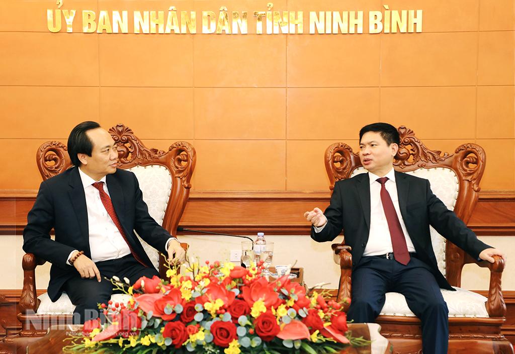 Đồng chí Chủ tịch UBND tỉnh Phạm Quang Ngọc nhấn mạnh sau hợp nhất tỉnh Ninh Bình có không gian phát triển rất thuận lợi. Đây là điều kiện lý tưởng cho các trường xây dựng cơ sở đào tạo và thực nghiệm; đồng thời tạo điều kiện thuận lợi cho học sinh, sinh viên kết hợp học tập với thực hành nhờ có nhiều khu công nghiệp đa ngành nghề.