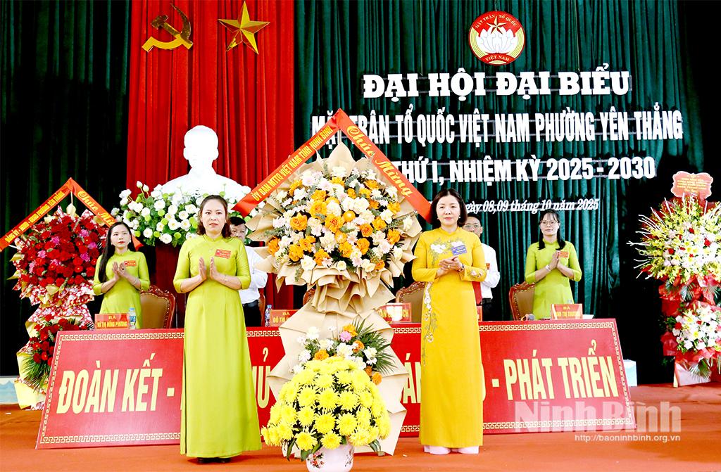 Đại hội đã hiệp thương cử 63 ủy viên Ủy ban MTTQ Việt Nam phường nhiệm kỳ 2025 - 2030. Bà Đỗ Thị Hương được tín nhiệm hiệp thương cử giữ chức Chủ tịch Ủy ban MTTQ Việt Nam phường Yên Thắng lần I, nhiệm kỳ 2025- 2030.