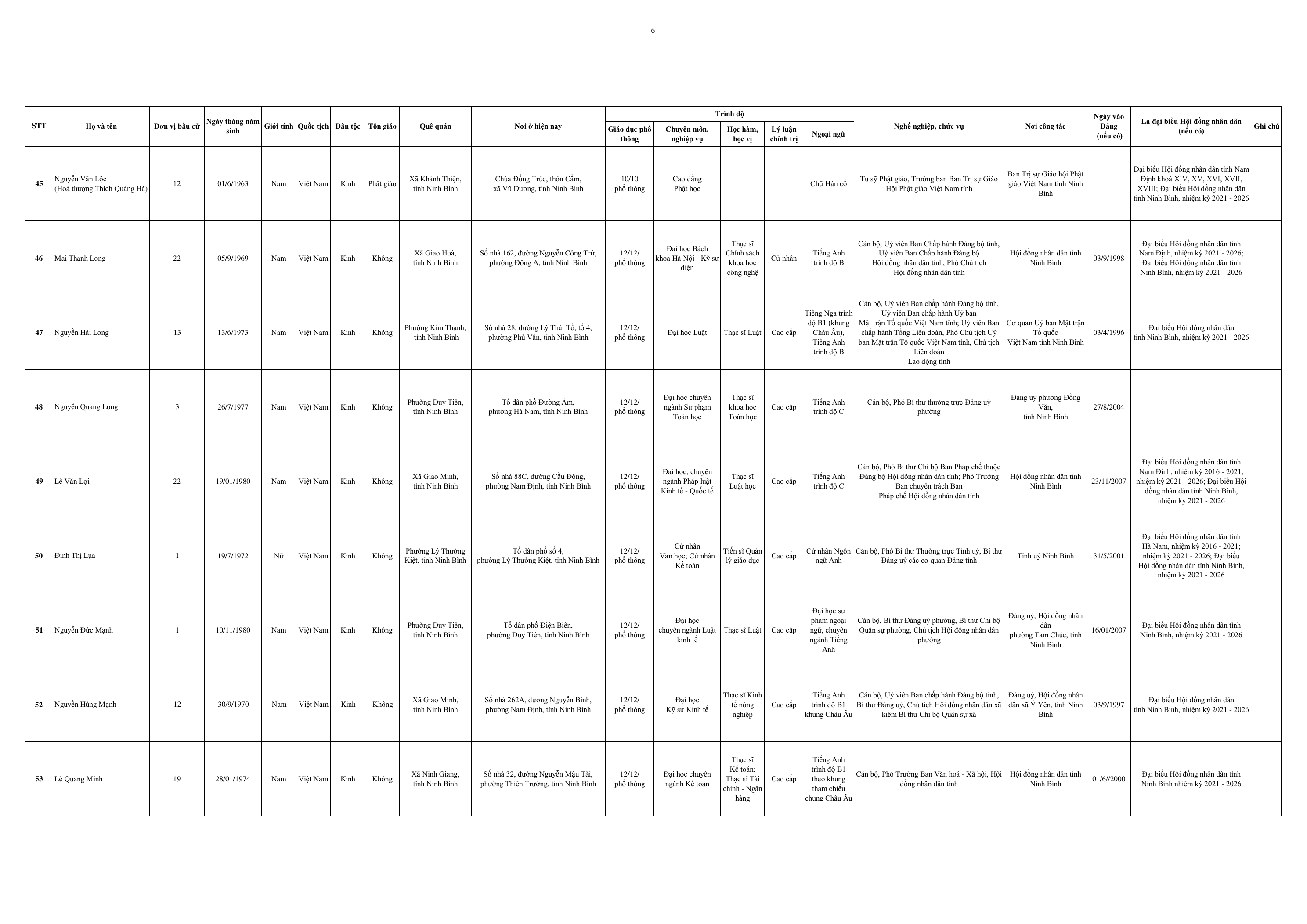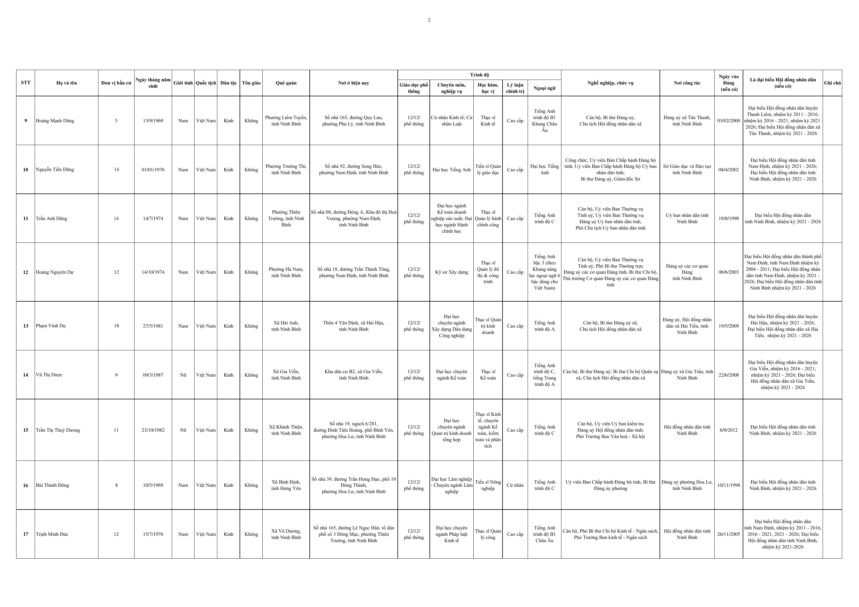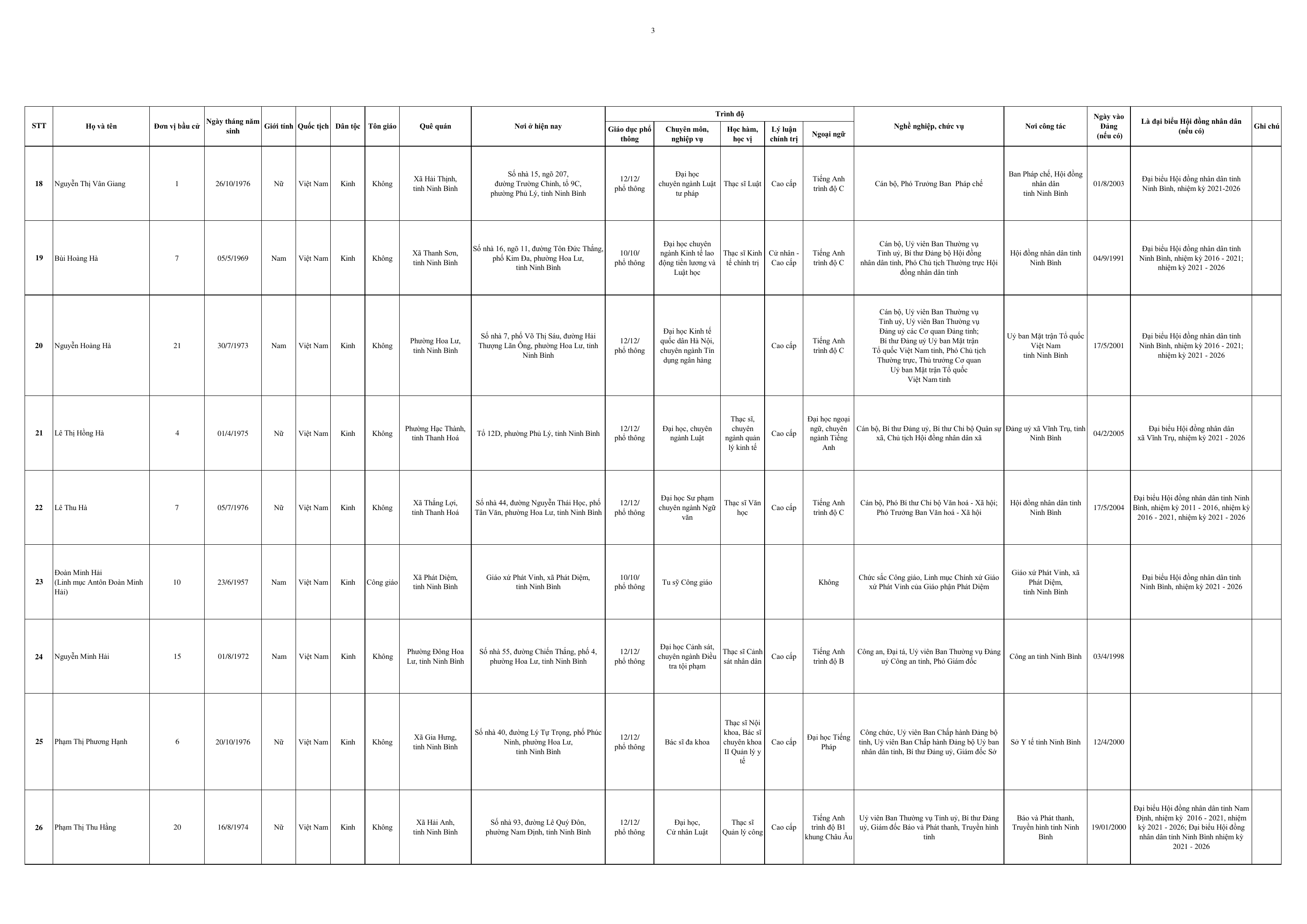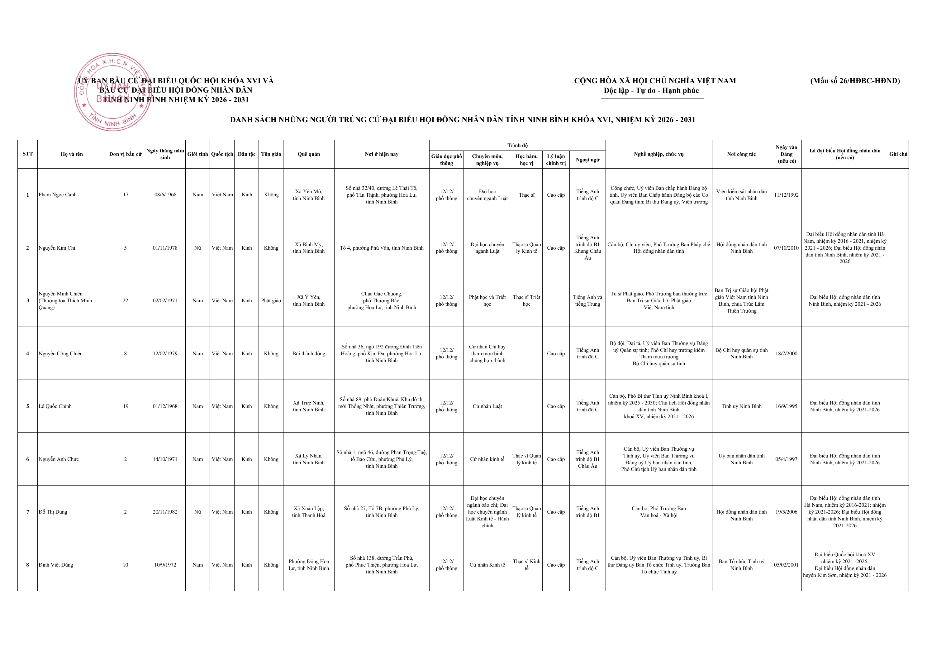 Dưới đây là Danh sách những người trúng cử đại biểu HĐND tỉnh Ninh Bình khoá XVI, nhiệm kỳ 2026-2031: