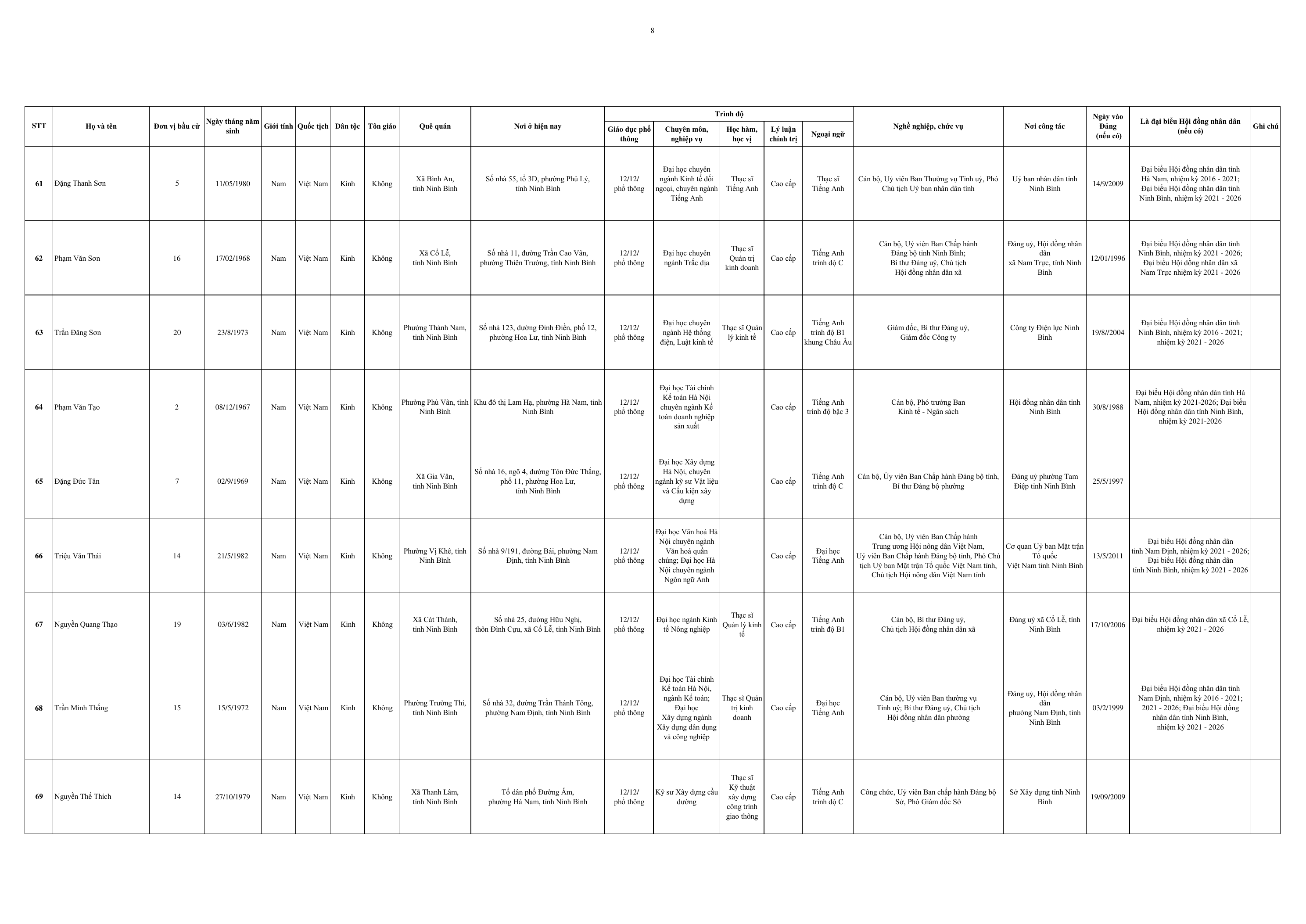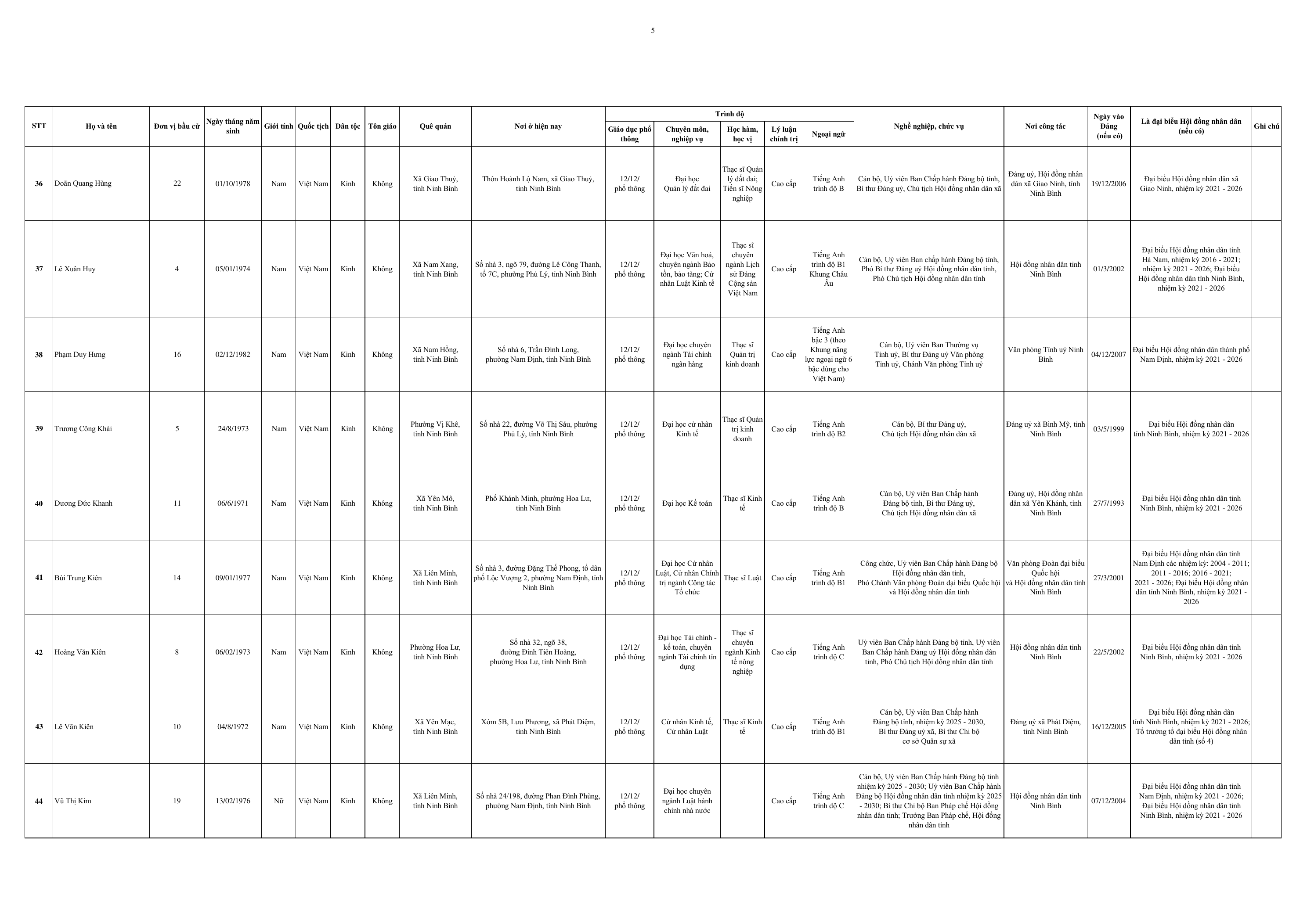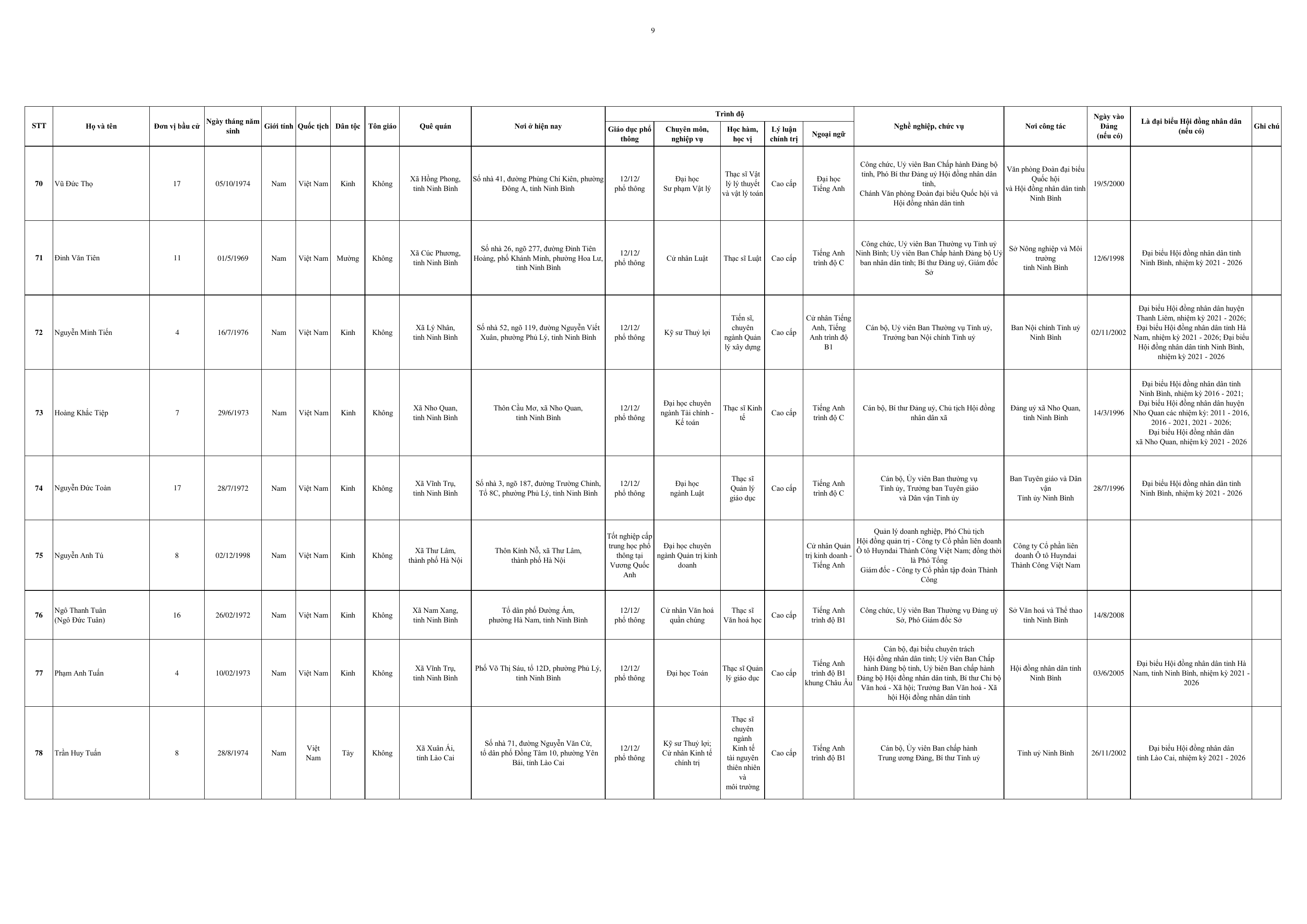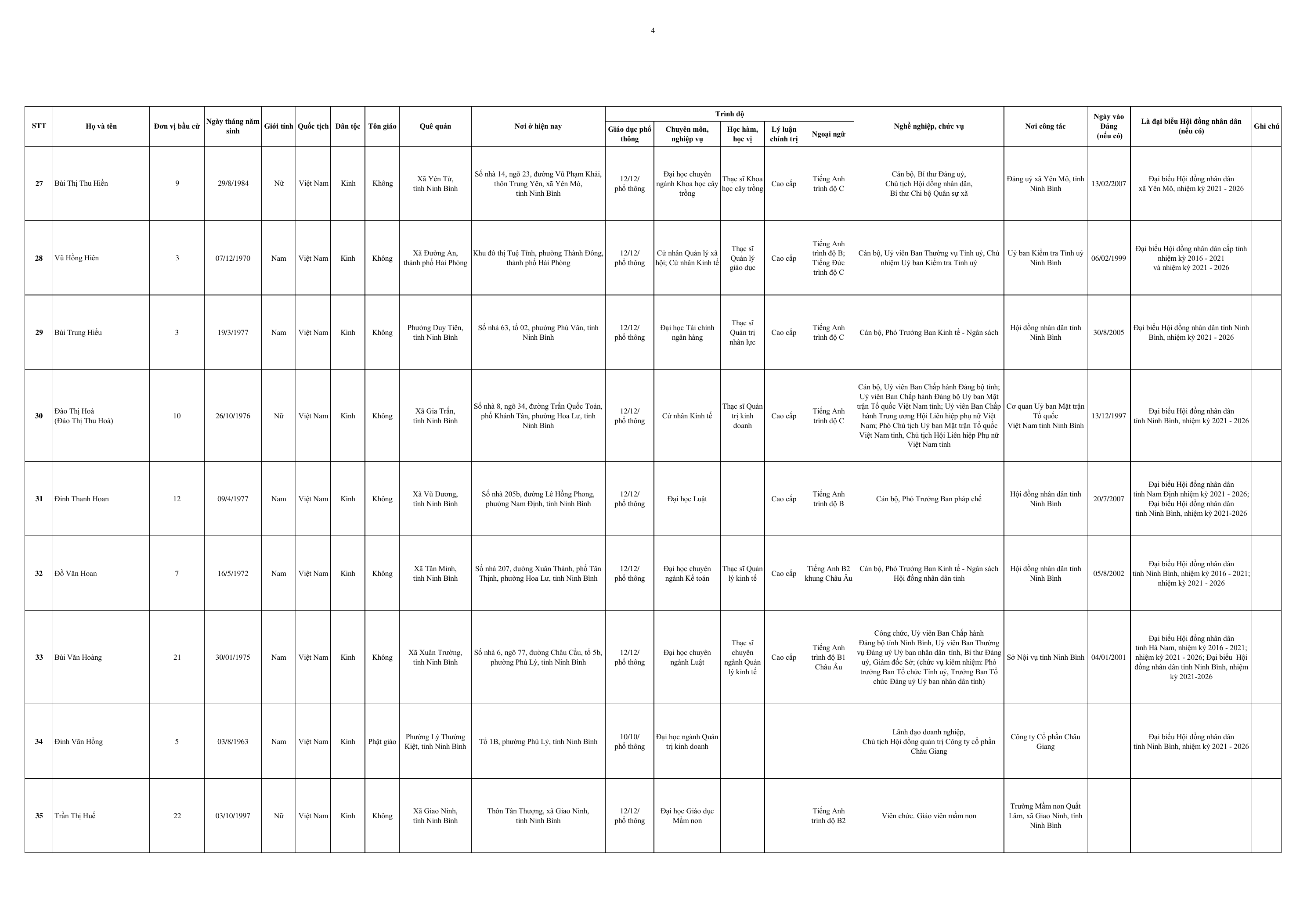 Dưới đây là Danh sách những người trúng cử đại biểu HĐND tỉnh Ninh Bình khoá XVI, nhiệm kỳ 2026-2031:
