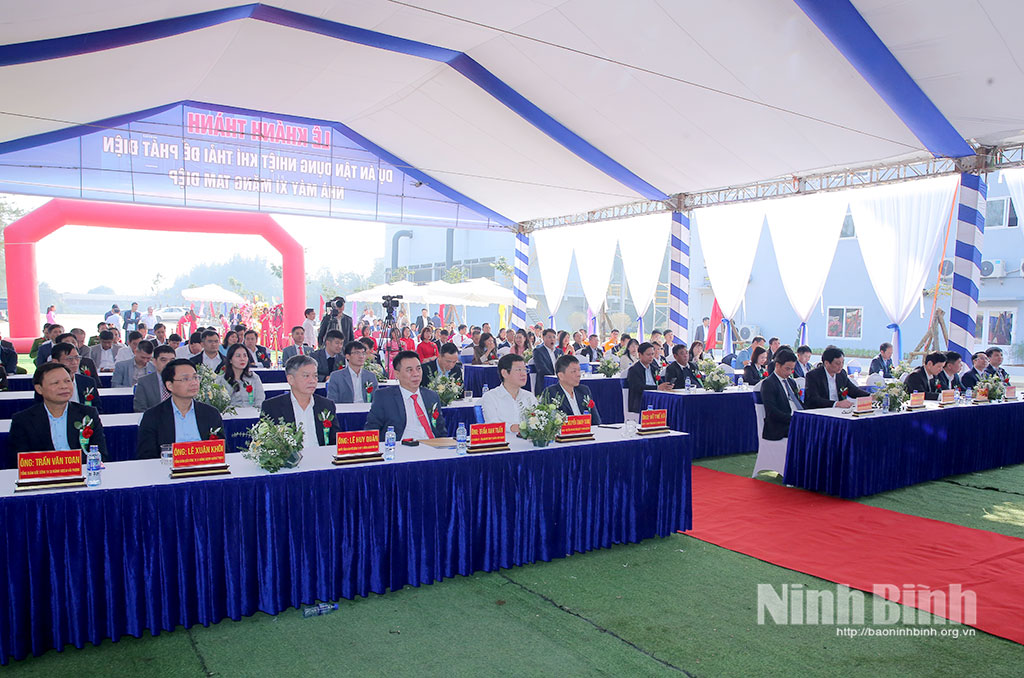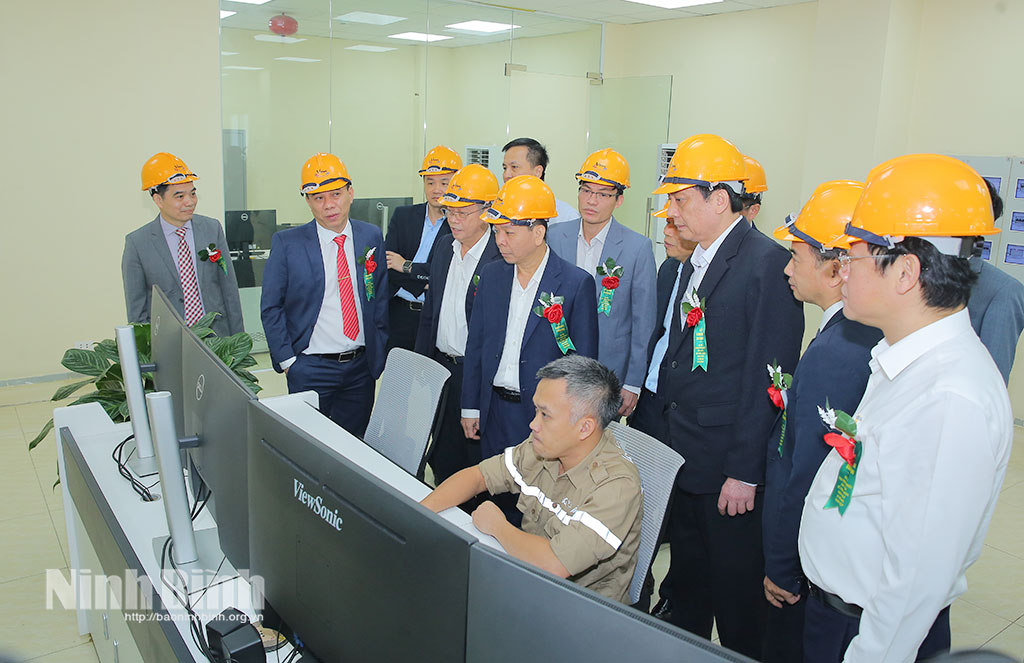 Tại buổi lễ, các đại biểu đã thực hiện nghi thức cắt băng khánh thành và tham quan thực tế dây chuyền vận hành hệ thống tận dụng nhiệt khí thải để phát điện tại Nhà máy Xi măng Vicem Tam Điệp.