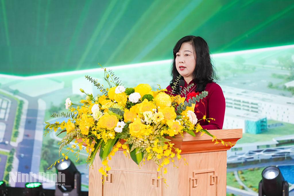 Phát biểu tại buổi lễ, thay mặt Tỉnh ủy, HĐND, UBND tỉnh, đồng chí Phó Chủ tịch UBND tỉnh Hà Lan Anh trân trọng cảm ơn các đồng chí lãnh đạo Chính phủ, Bộ Giáo dục và Đào tạo và các bộ, ngành Trung ương đã quan tâm ủng hộ, tạo mọi điều kiện thuận lợi trong việc triển khai dự án. Đồng chí Phó Chủ tịch UBND tỉnh cũng đánh giá cao và ghi nhận, biểu dương sự nỗ lực, trách nhiệm của Ban Quản lý dự án đầu tư xây dựng công trình dân dụng và công nghiệp tỉnh; các sở, ban, ngành của tỉnh, đơn vị tư vấn, nhà thầu thi công tham gia dự án và Trường Đại học Hoa Lư; biểu dương cấp ủy, chính quyền và Nhân dân phường Hoa Lư đã đồng thuận, ủng hộ, phối hợp để hoàn thành dự án bảo đảm chất lượng, tiến độ, mỹ thuật…