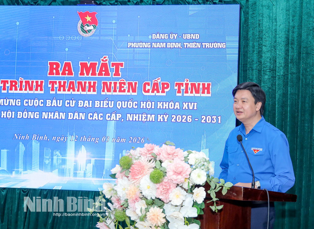 Hưởng ứng Tháng Thanh niên năm 2026 và thiết thực chào mừng cuộc bầu cử đại biểu Quốc hội khóa XVI và đại biểu HĐND các cấp nhiệm kỳ 2026-2031, sáng 12/3, Ban Thường vụ Tỉnh đoàn phối hợp với cấp ủy, chính quyền phường Nam Định và phường Thiên Trường tổ chức ra mắt công trình thanh niên cấp tỉnh gắn với các hoạt động chuyển đổi số và bảo tồn, phát huy giá trị di tích lịch sử - văn hóa trên địa bàn.