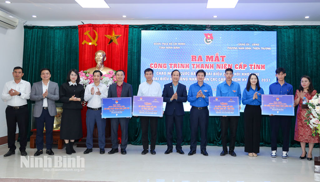 Tại chương trình, Ban Tổ chức đã trao tặng biển công trình thanh niên cấp tỉnh cho phường Nam Định và phường Thiên Trường. Các công trình do Tỉnh đoàn phối hợp với Viện Giải pháp Chuyển đổi số và Đoàn Thanh niên Tập đoàn VNPT triển khai. Theo đó, dự án đã thực hiện số hóa 6 di tích lịch sử - văn hóa trên địa bàn hai phường với tổng kinh phí 300 triệu đồng, giúp người dân và du khách có thể tra cứu thông tin về di tích thông qua các nền tảng số hiện đại. Cùng với đó, 9 điểm phát Wi-Fi miễn phí cũng được lắp đặt với tổng kinh phí 72 triệu đồng, phục vụ nhu cầu học tập, làm việc và tiếp cận thông tin của người dân.
